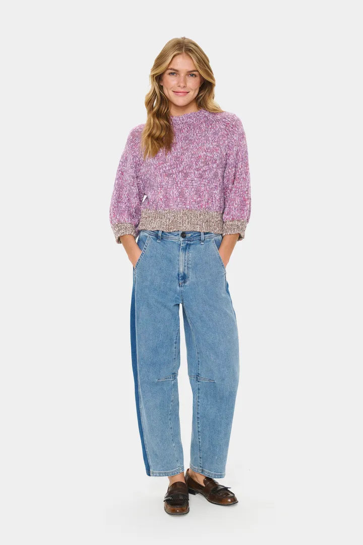This knitted pullover is an easy piece for casual dressing this winter. In a unique textured finish with a multi-coloured weave, this is a standout piece to wear with your jeans for a simple outfit that is still full of personality. The short puffed sleeves create a feminine but minimal silhouette for all year round.