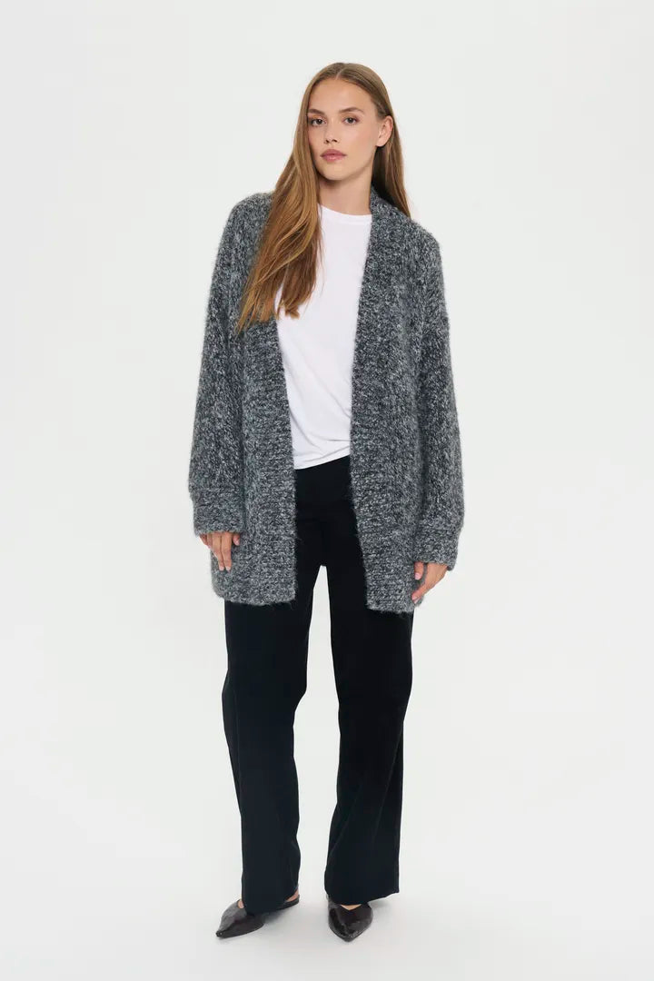 Effortless and easy to wear, this cardigan is the perfect throw-on layer for cooler days. The soft speckled grey effect gives it a relaxed, textured look, while the open finish keeps the silhouette simple and versatile. Designed with long sleeves and a length that falls just below the waistline, it is a flattering piece that adds comfort and style to any outfit.