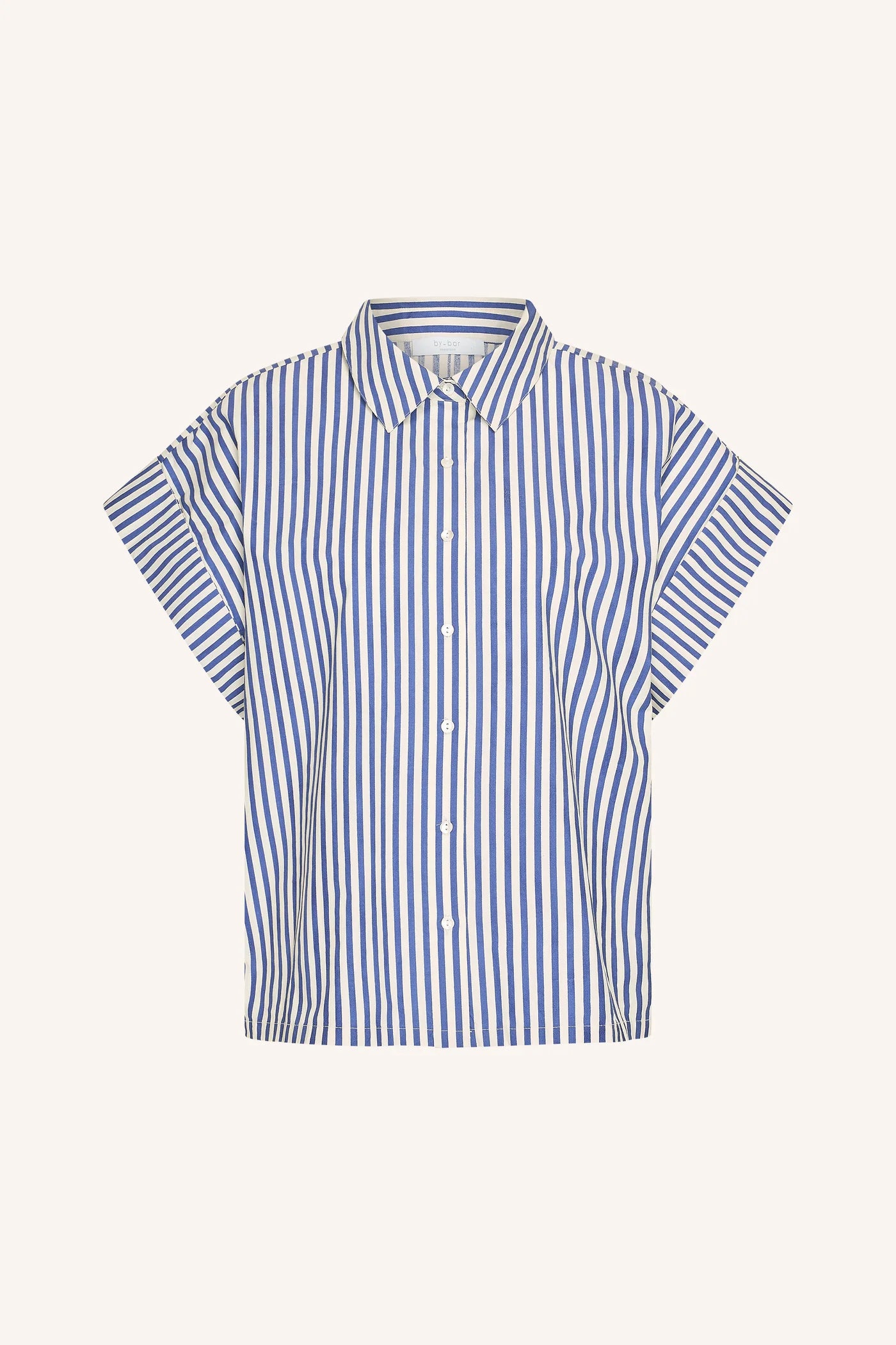 Discover the pixie blue stripe blouse with a casual fit and comfortable regular cut. This blouse stands out with its timeless stripe pattern and classic collar with button closure. Perfect for a relaxed, stylish look that effortlessly pairs with your favourite outfits.