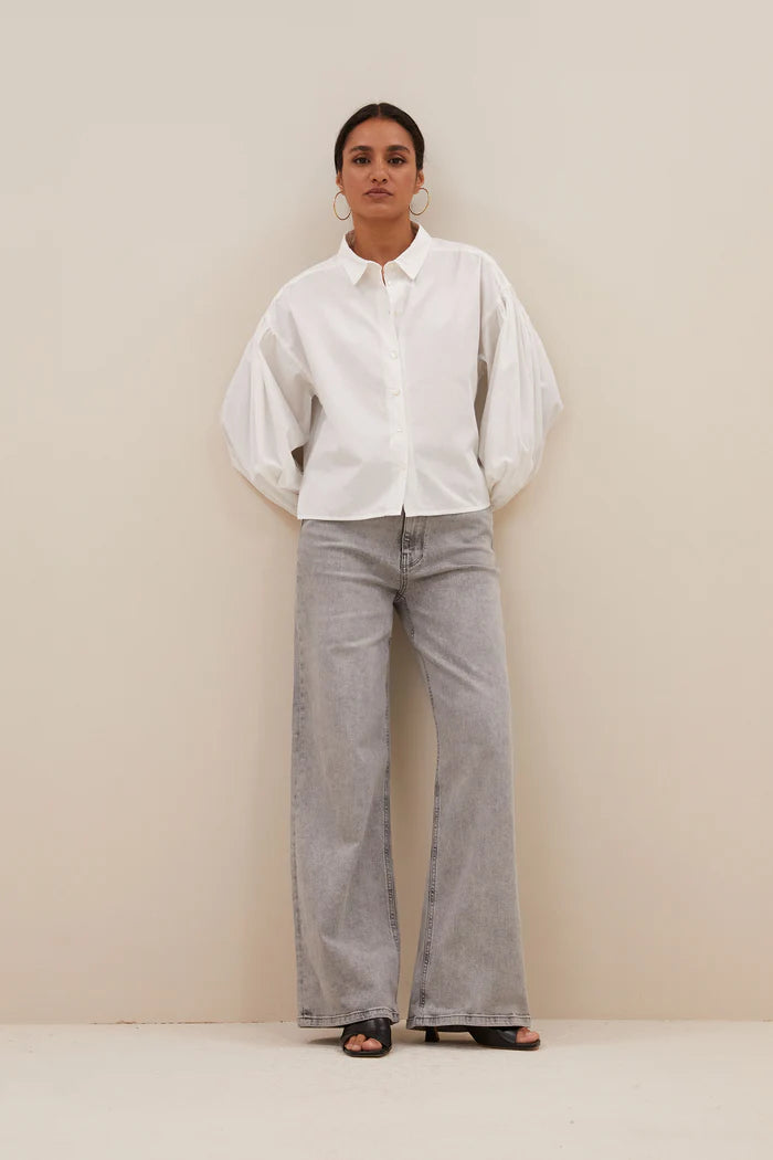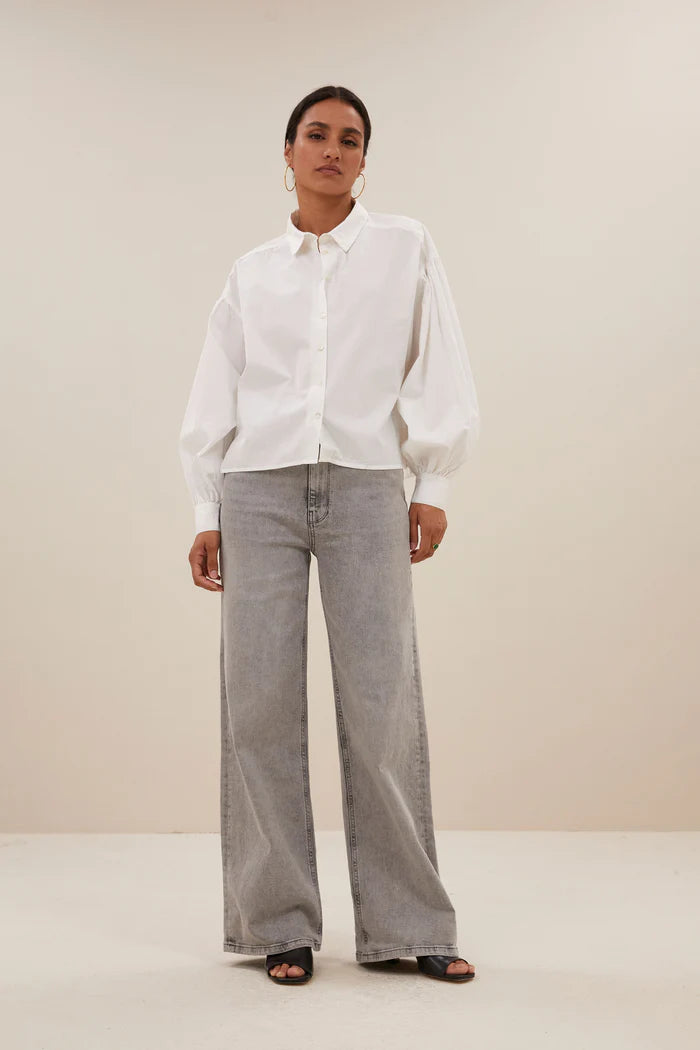 A working wardrobe needs the essentials to make dressing easy day after day and this blouse may be the perfect piece to start that capsule collection. In a beautiful cotton fabric, this tailored shirt has puffed sleeves and a shorter length, fit for pairing with high waisted jeans, skirts or tailored trousers. If you want to infuse this with more personality, pick a gilet or waistcoat in your favourite colour to jazz it up.