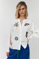 ScottieLL is a charming and feminine shirt filled with colourful embroidered motifs that create an artistic and lively expression. The soft, lightly textured cotton quality makes it comfortable to wear and perfect for the brighter days of the season.