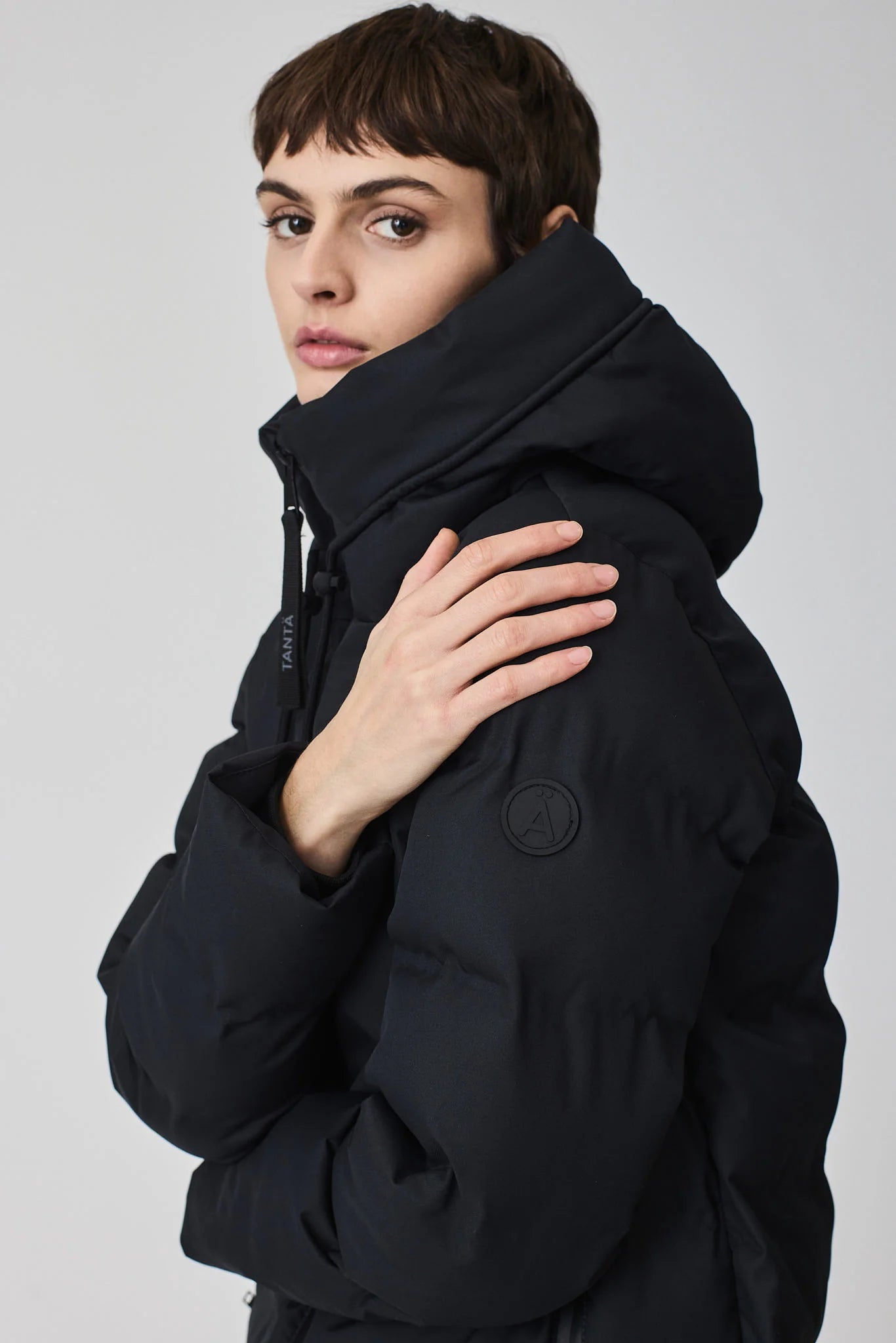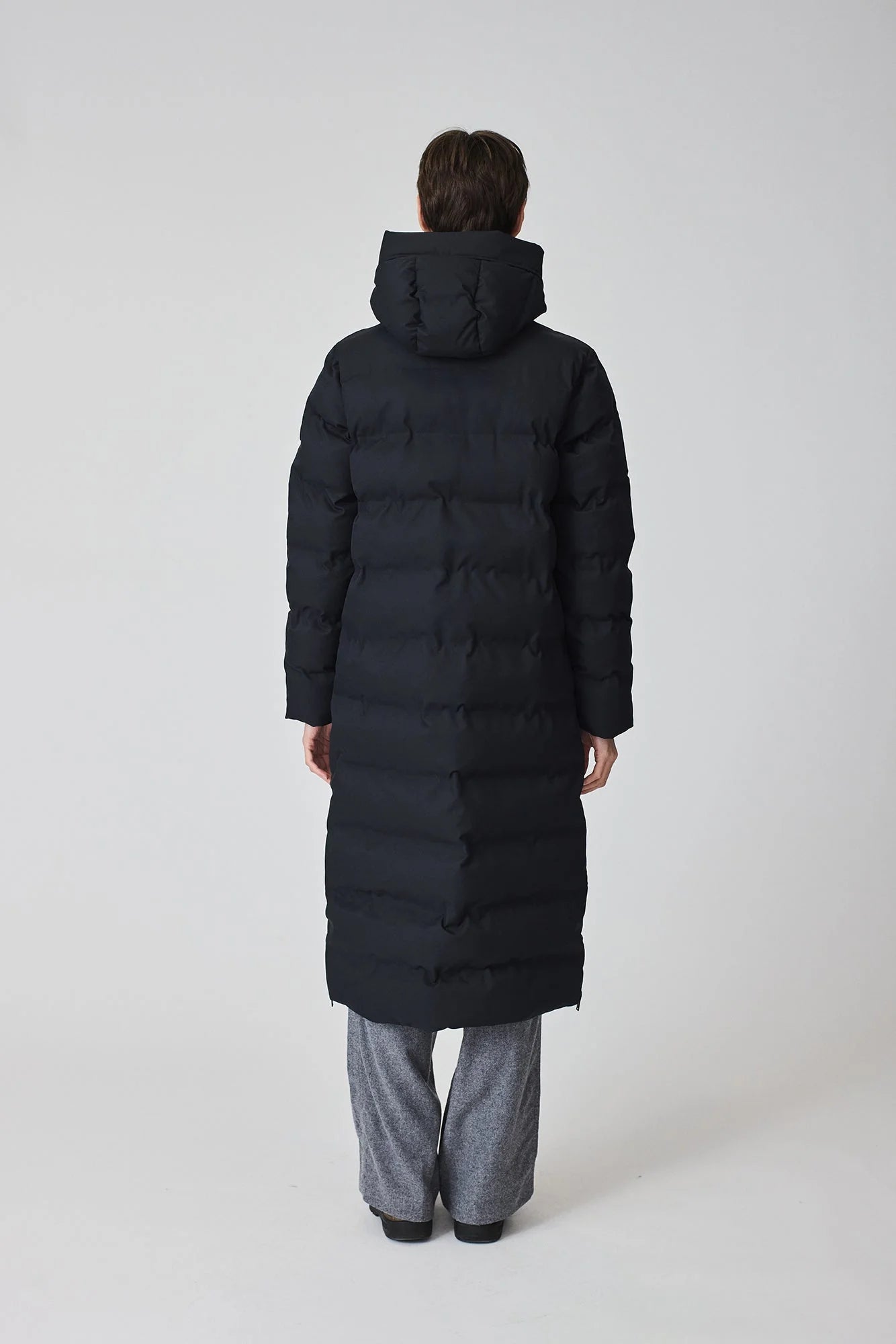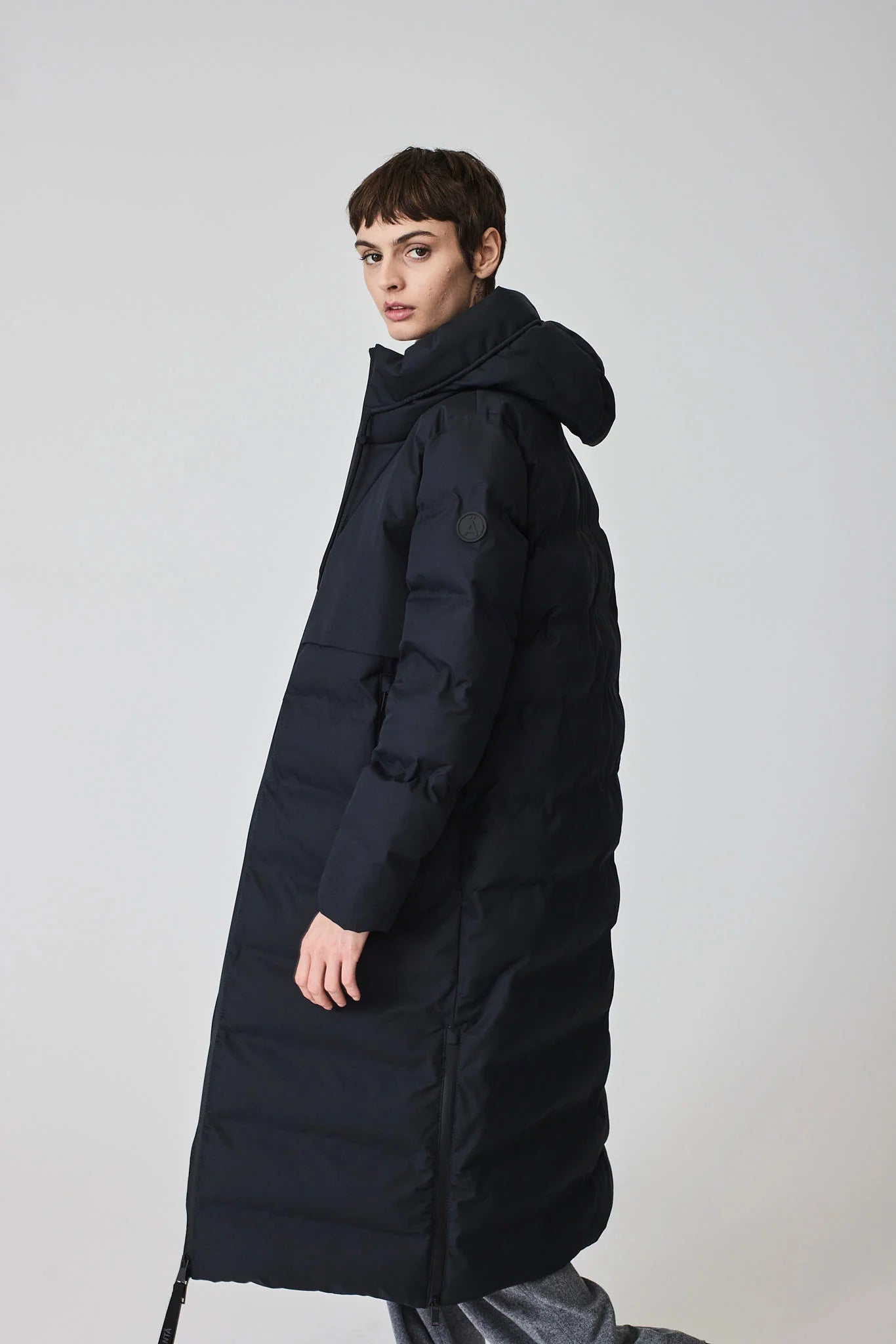 When the weather changes and it gets cold, a sleek and minimal winter jacket is a must have. This padded puffer coat is 100% waterproof and has a featherless down insulation for constant cosiness and dryness without compromising on style. This coat has side zippers to create a more feminine silhouette.