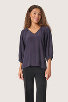 This blouse is simple with classically elegant details like a scooped hem and a subtly blouson sleeves. Made to create an effortless and feminine effect, this blouse can be worn with jeans or tailored trousers with ease.