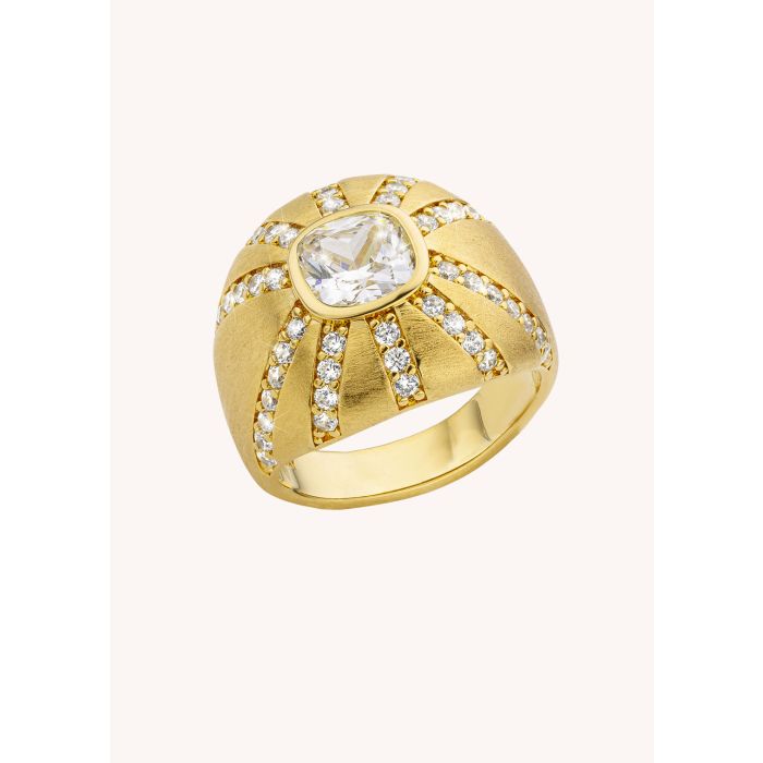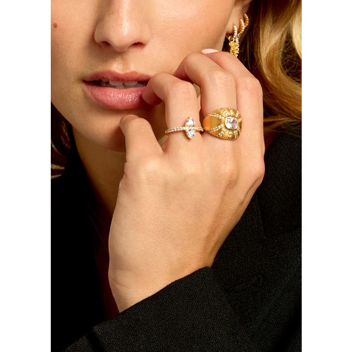 This ring from Mya Bay is a true statement piece inspired by the west coast of America. With a large clear stone and brushed finish, this piece will quickly become an everyday favourite.