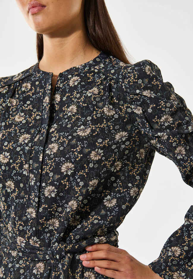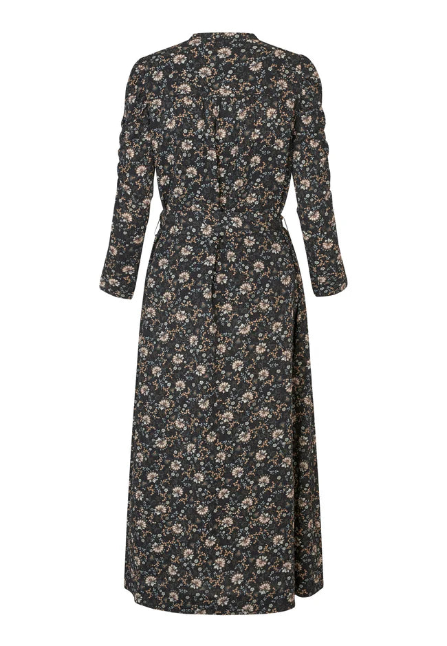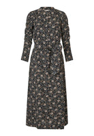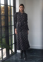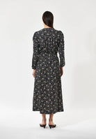 This dress is all you need for any autumnal day out. A perfect blend of suitable warmth and all year style, this dress has long sleeves and falls just to the middle of the calf, making it a great piece for the winter months ahead. The viscose fabric is beautifully flattering, and the shape can be emphasised more with fabric belt at the waist.