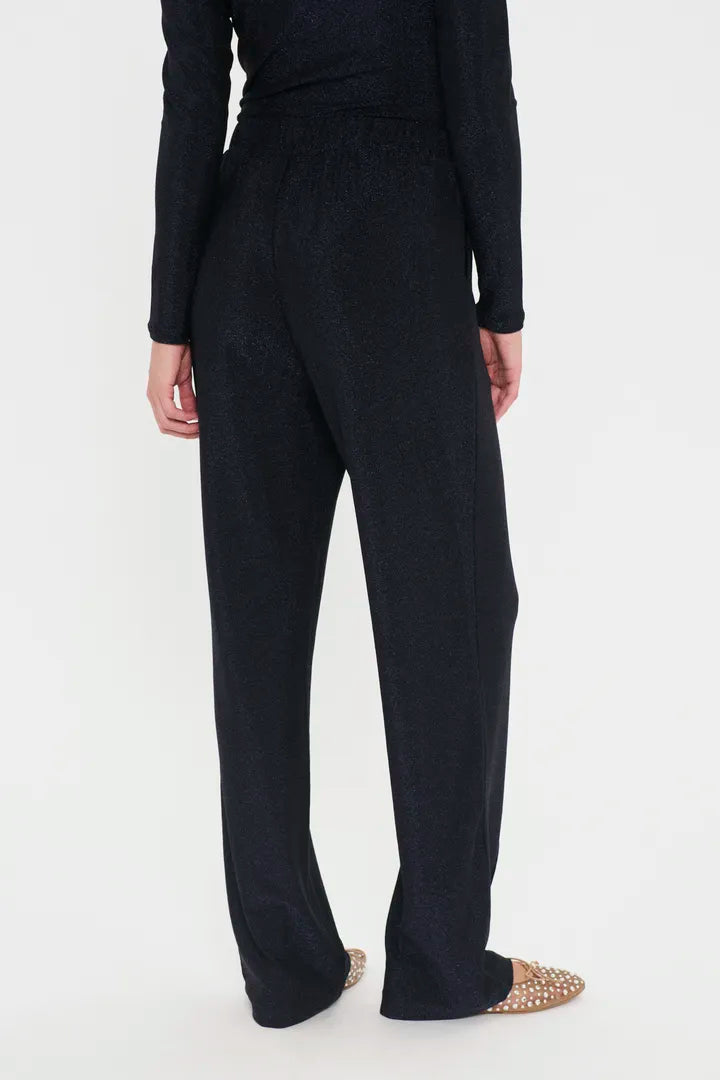 Relaxed yet eye-catching, these trousers are the perfect blend of comfort and style. Designed with a casual wide leg fit and an elasticated waist, they move effortlessly with you while keeping the look laid-back and flattering. The subtle shimmer effect catches the light beautifully, making them ideal for both daytime outings and evening plans. Finished with handy side pockets, they are as practical as they are chic.
