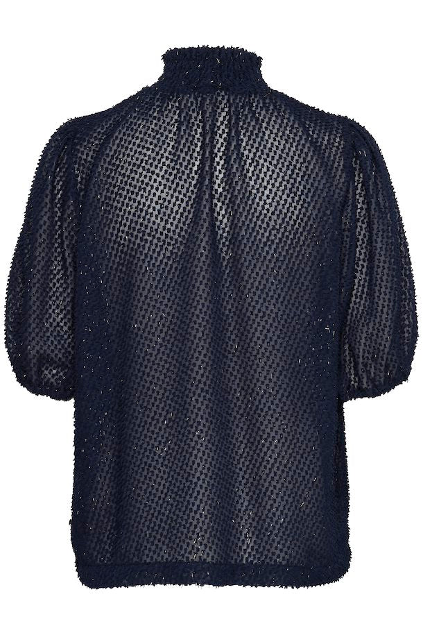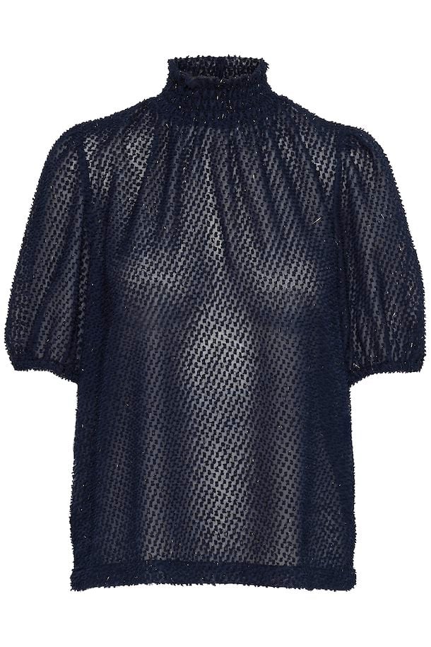 This beautiful blouse is the ultimate winter staple. Its sheer fabric and high smocked neck give off a fashionable vibe, while the short puff sleeves add a touch of playfulness.
