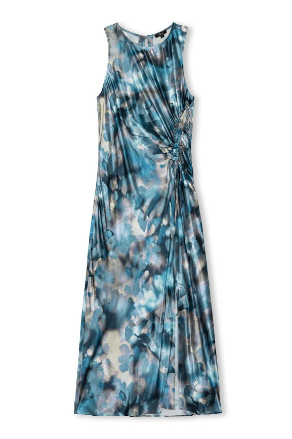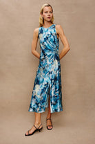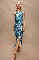 This dress will cause some serious compliments, and don't say we didn't warn you. In a striking shape, this sleeveless midi dress features a side slit and ruched side body creating a waterfall like effect in the satin fabric. This is one of those dresses that will never fail you for any important event. Why not try pairing this dress with some sparkly silver jewellery.