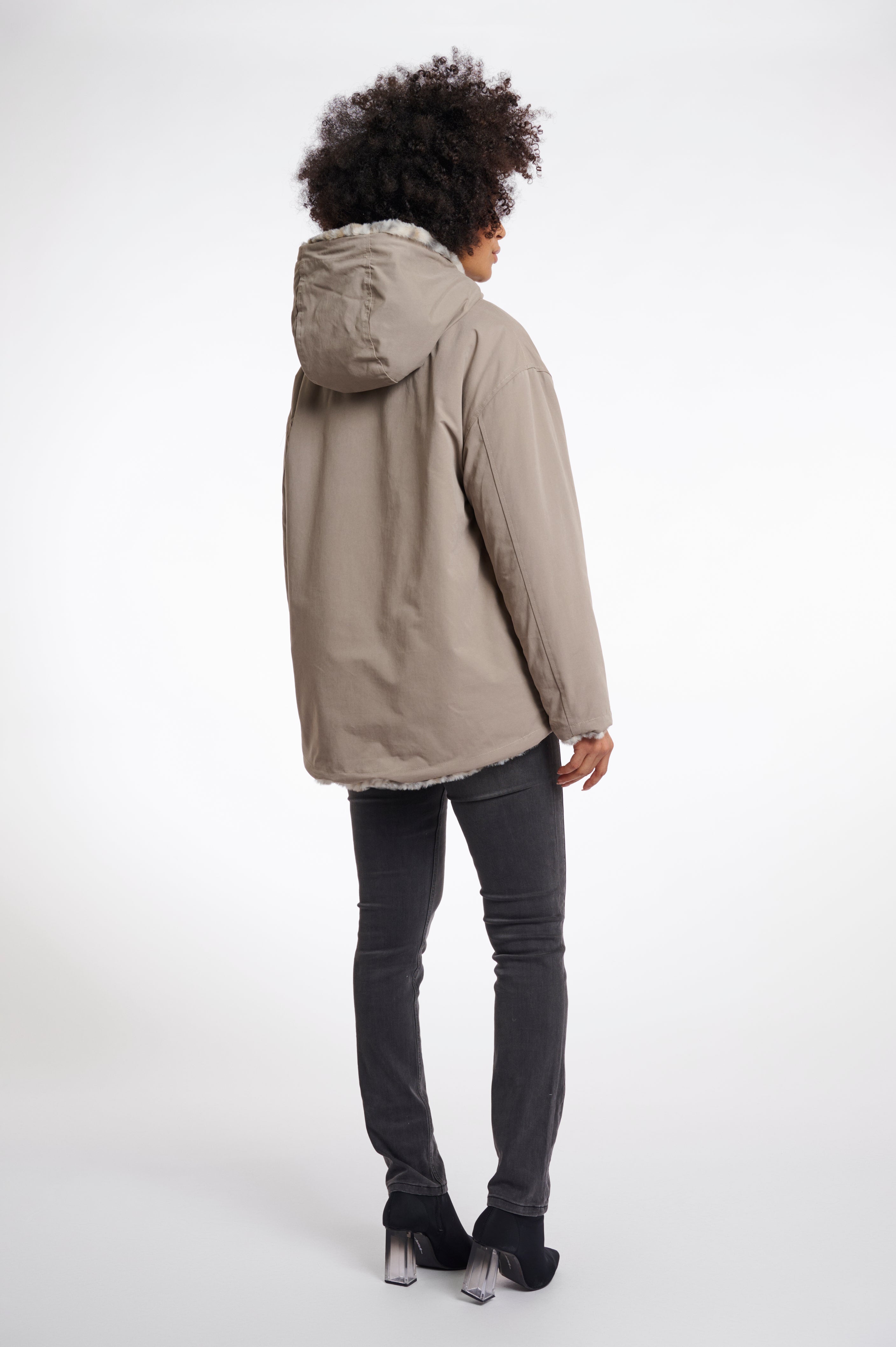 Wear it wild and playful with the leopard side out, or keep it classic and understated with the plain padded side. Effortlessly versatile, this coat makes staying warm feel as stylish as it is fun.
