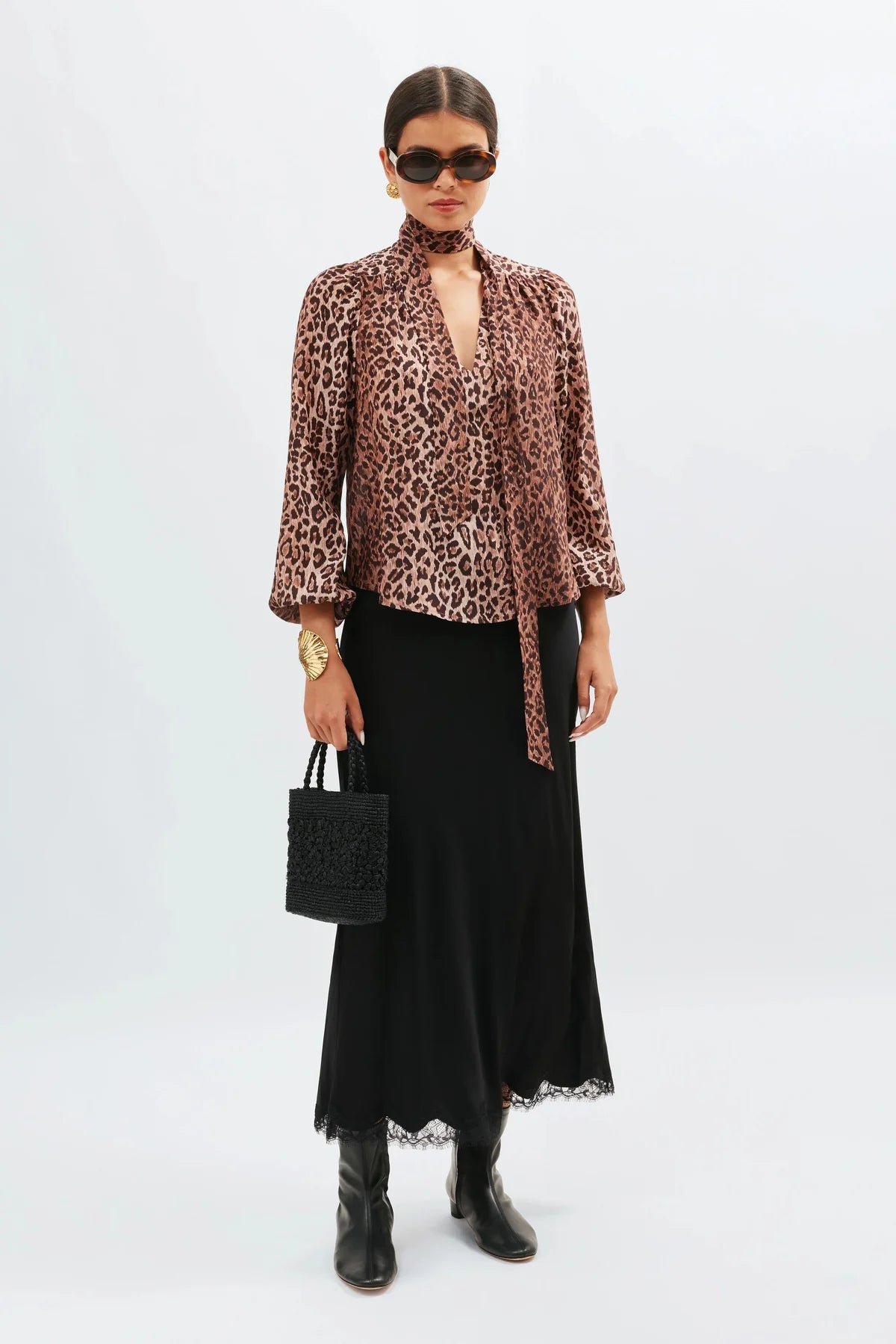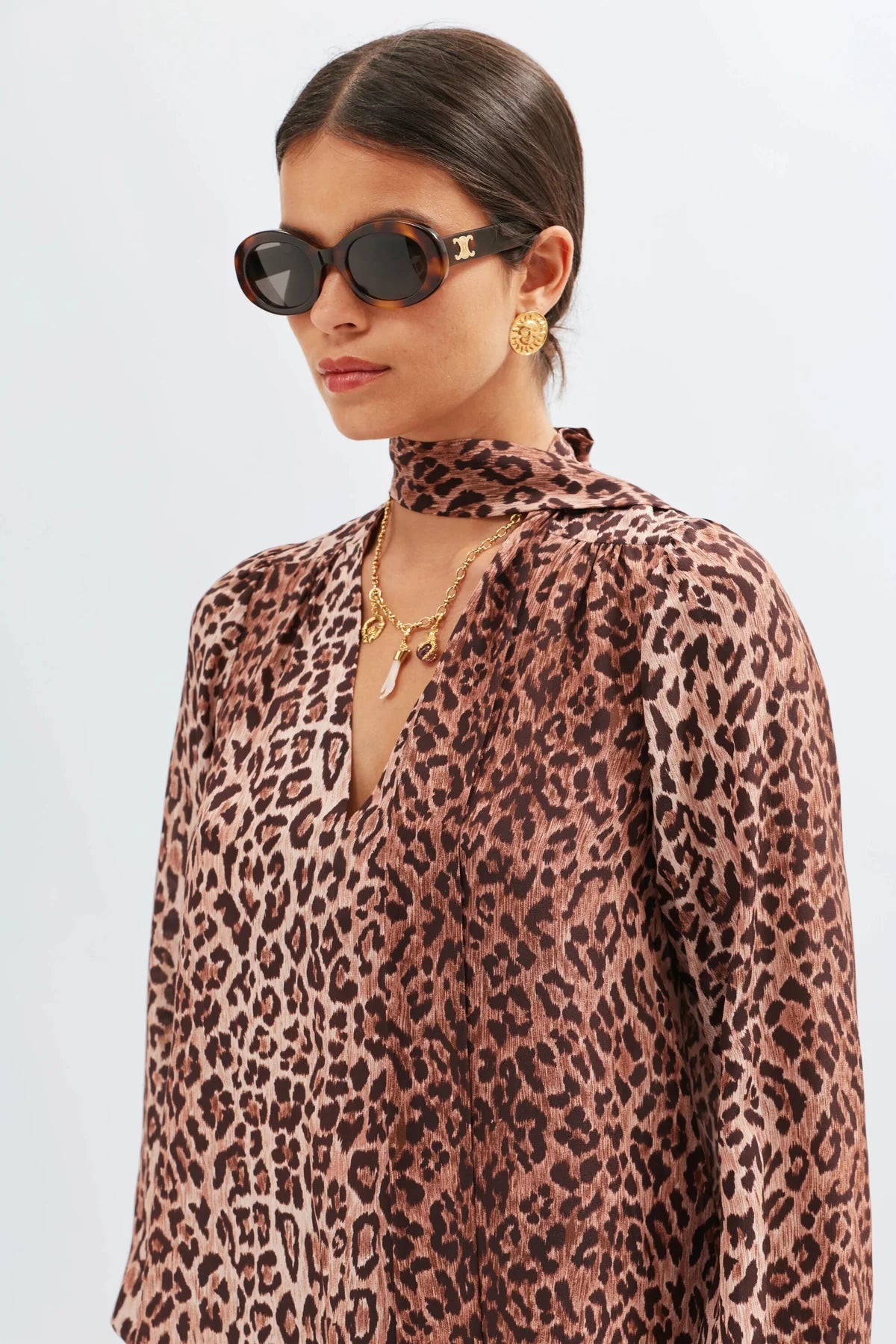 A vintage-inspired dream with a modern twist, the Lila Blouse is designed to make every outfit feel timelessly elegant. Crafted from luxurious silk crepe de chine, it features a subtle drape effect that flatters the silhouette with every movement. The leopard print pattern adds a touch of bold sophistication, while the lightweight, unlined design ensures comfort from day to night. With its V-neckline and long sleeves, this blouse strikes the perfect balance between effortless allure and refined style. Simply slip it on and let its natural flow do the talking.