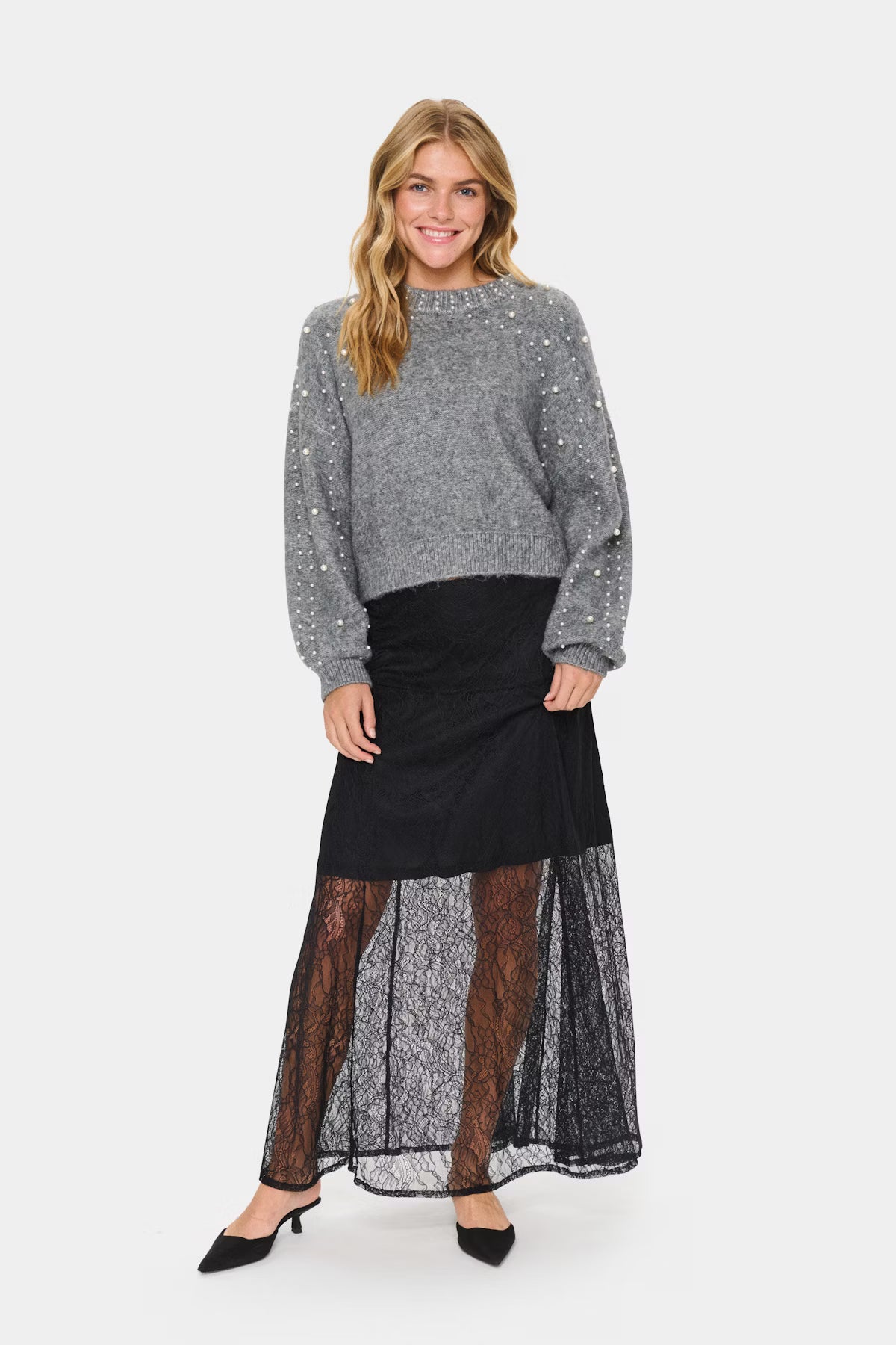 A piece like this is perfect for the days where you want to feel comfy and casual but still a little dressed up. In a cropped and relaxed fit, you can throw this knit on with your skirts or jeans for an effortless look, but the pearl embellishments keep it feminine and slightly elevated.
