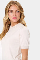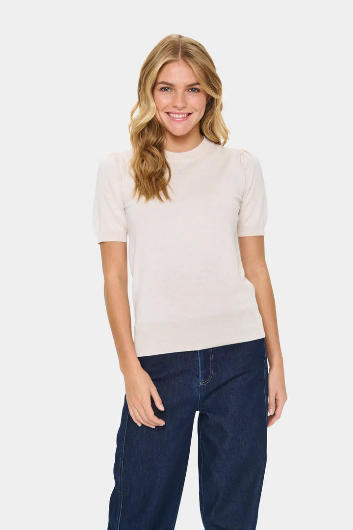 This short sleeved knitted top is a wardrobe staple for all year wear. In a lightweight knit, this piece is transitional from the winter all the way through to summer. The round neckline and casual design makes this the ideal top for wearing casually with jeans.