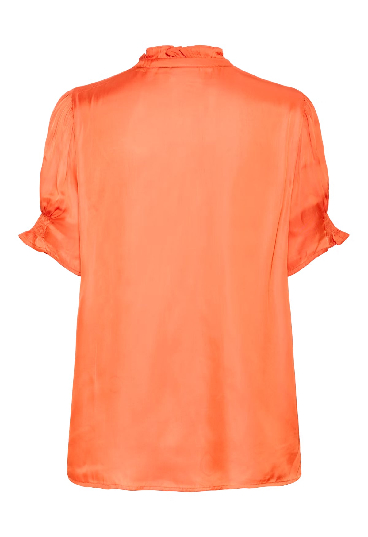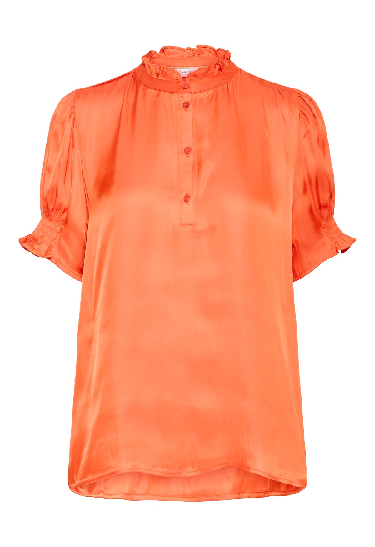 Smart, sophisticated and yet still 100% feminine, this blouse is one that can go from office chic, to night time glamour. With short puffed sleeves and a small ruffle collar, this beautiful blouse has a satin effect and unique taupe colouring.