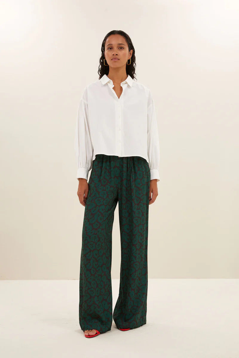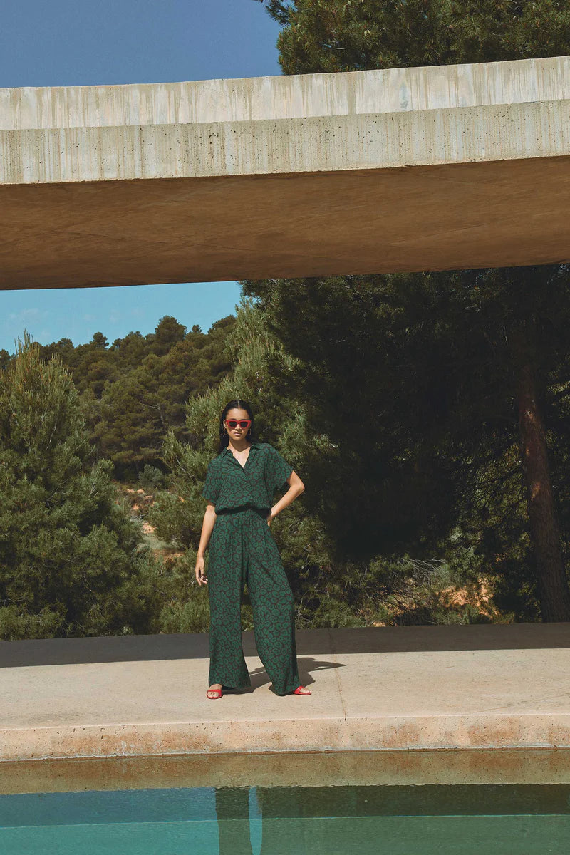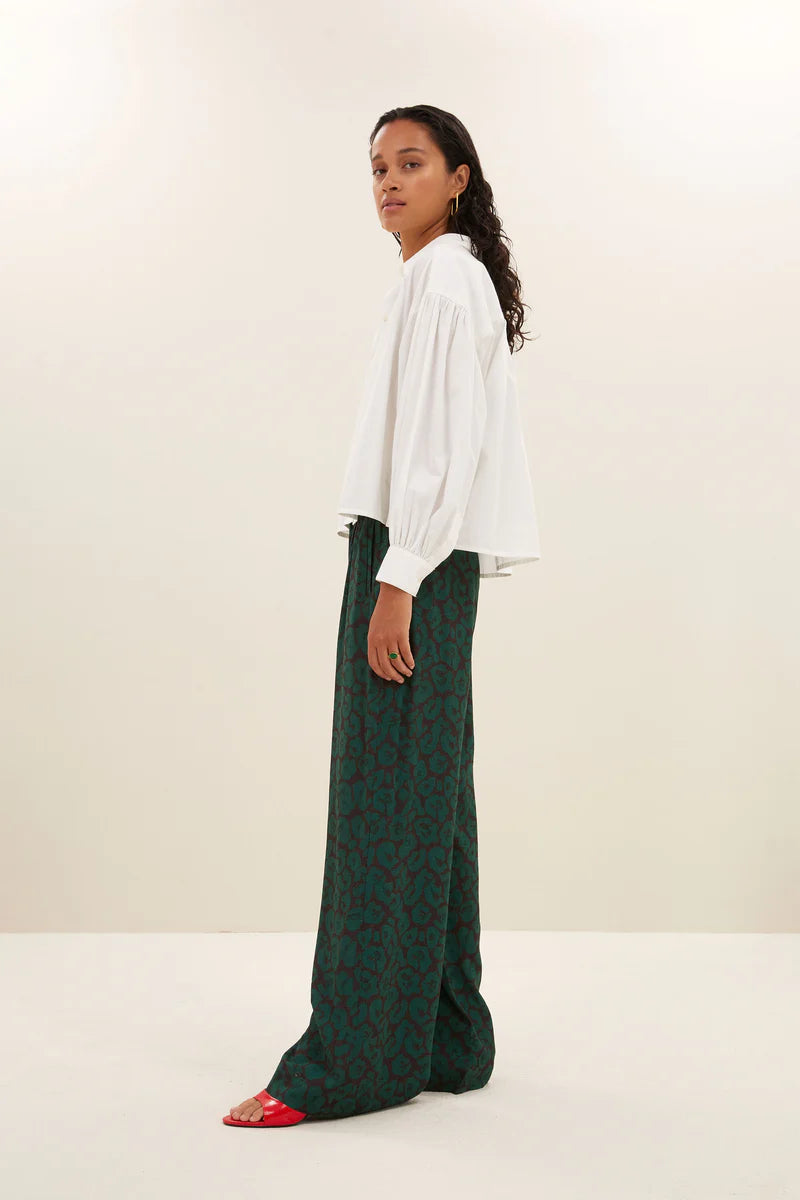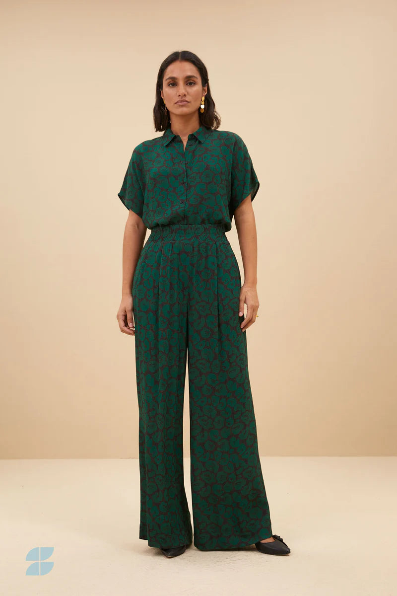 Introducing the Benji Spotted Pant, effortlessly stylish with its on-trend leopard print spots. With a relaxed fit, mid rise, and elasticated waistband, this pant offers an easy and comfortable fit. The front pleats and side pockets add functionality while the wide legs create a fashionable silhouette.