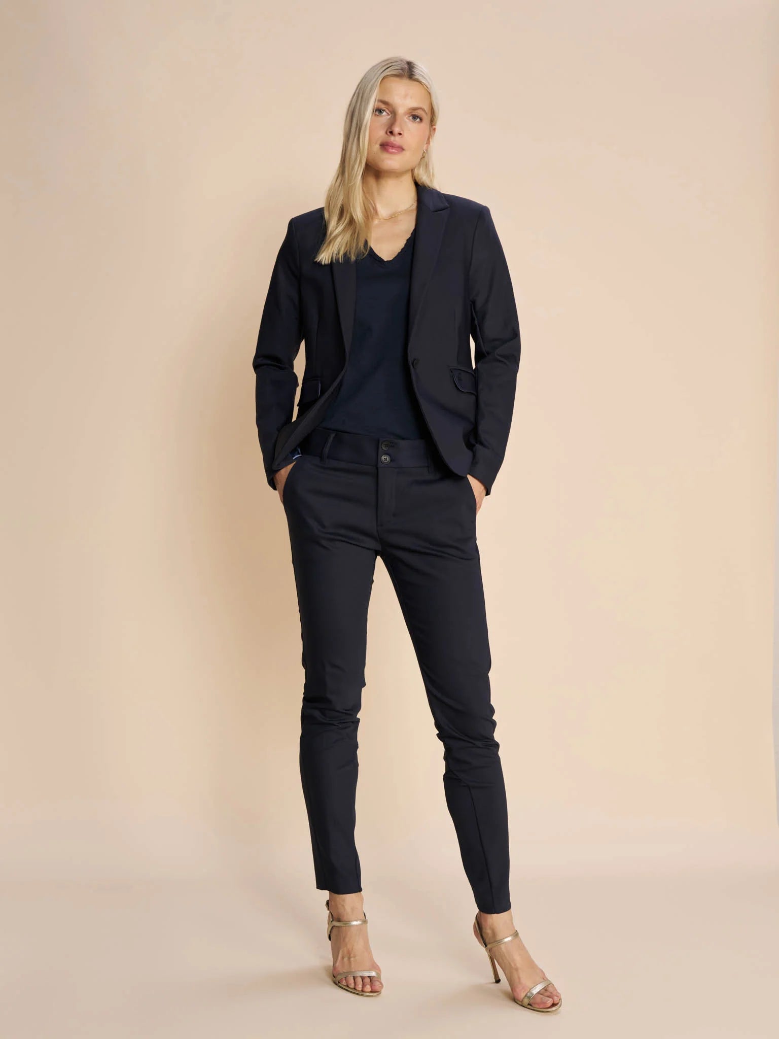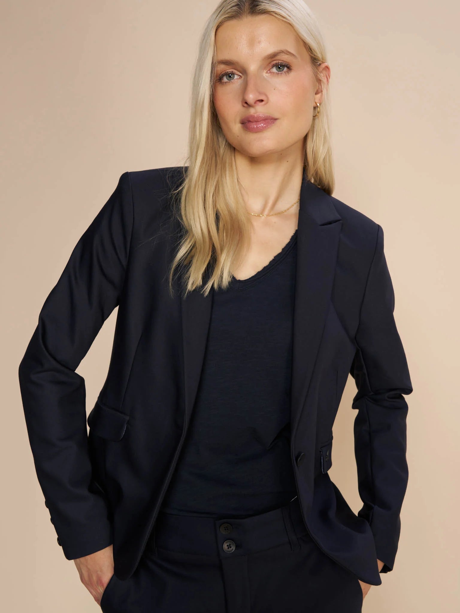Elevate your style with the fashionable Blake Night Blazer in Navy. Designed by MOS MOSH, this classic fitted blazer boasts a wrinkle resistant finish, perfect for those long days on the go.