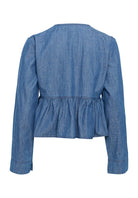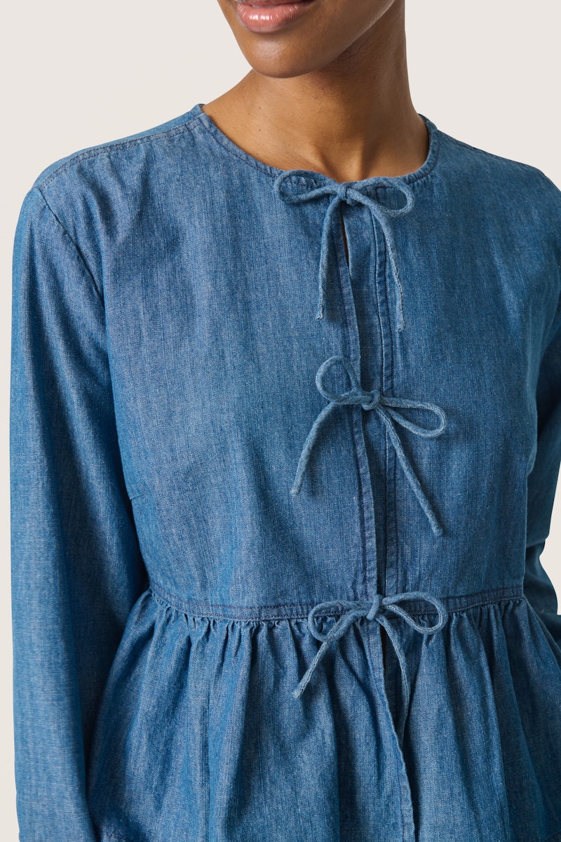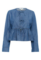 This casual denim top brings some elegant design to a very simple style. With a peplum waist and bow details at the front, this top is certainly a trendy choice for the spring.
