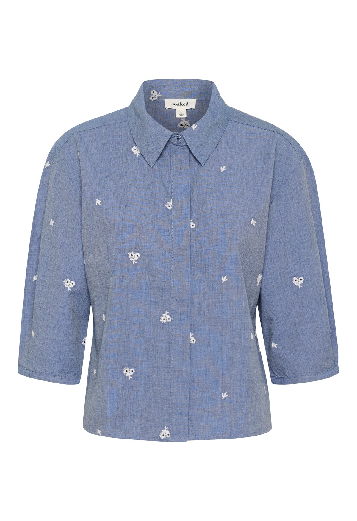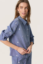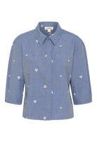 This sweet blue shirt is delicate and feminine, perfect for summer days out. With embroidery details all over, this relaxed shirt is casual for everyday wear, simply pair with some linen trousers for an effortless summer outfit.