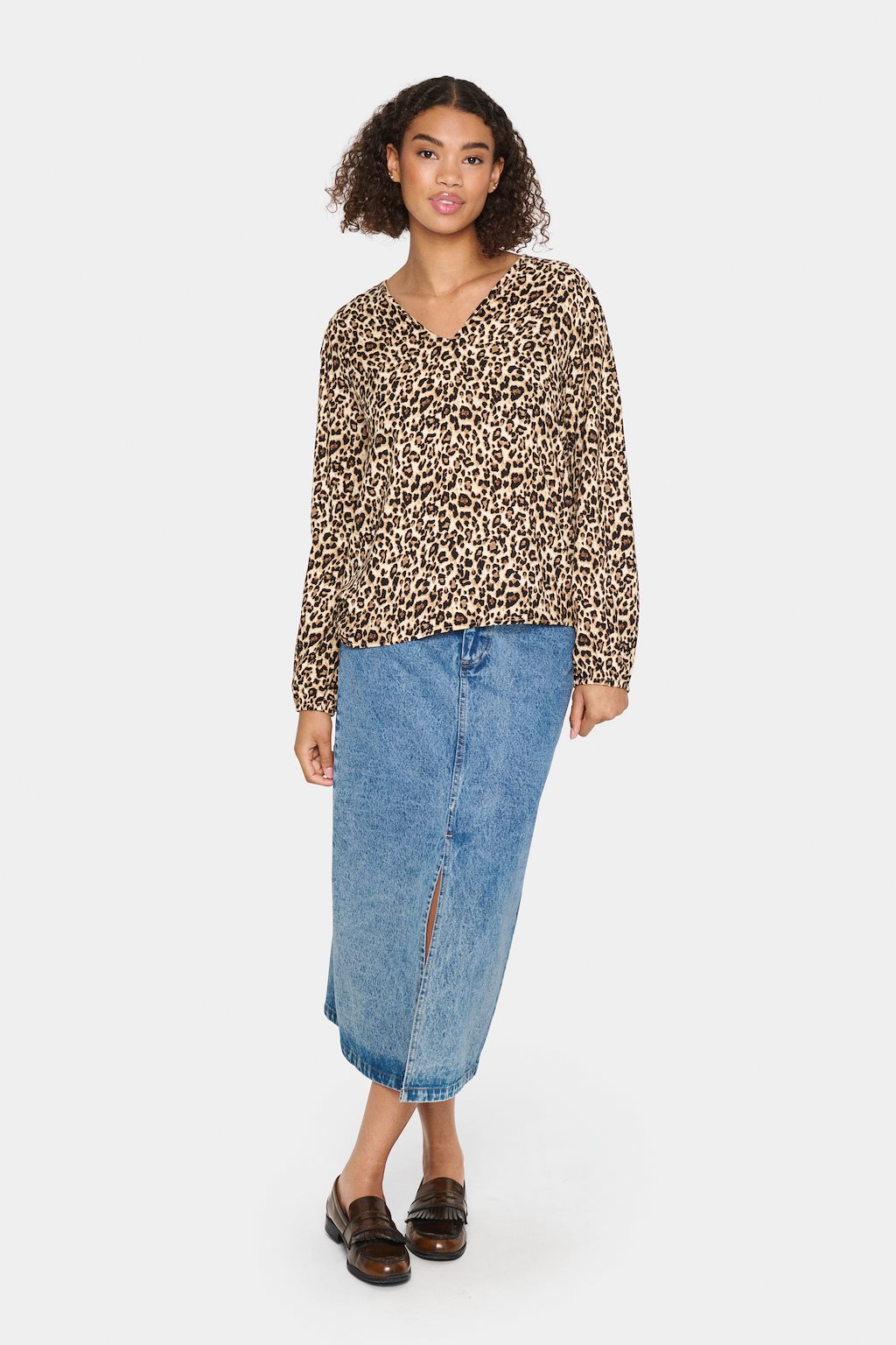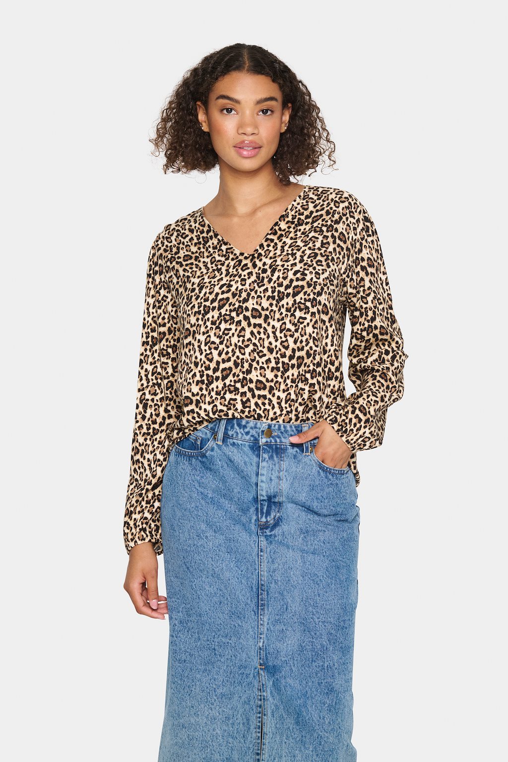 This blouse is sure to become your go-to for Christmas! The trendy leopard print adds a touch of wildness, while the v-neckline flatters any figure. Stay in style with this fashionable blouse and pair with your favourite jeans and boots for a smart casual look.