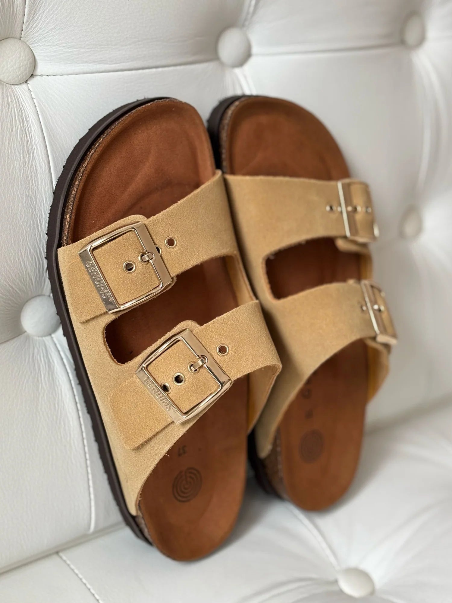 These super sleek sandals will go with everything, perfect for vacations somewhere sunny. Made from leather with a comfortable cork and foam insole, these sandals are fit for all day wear.