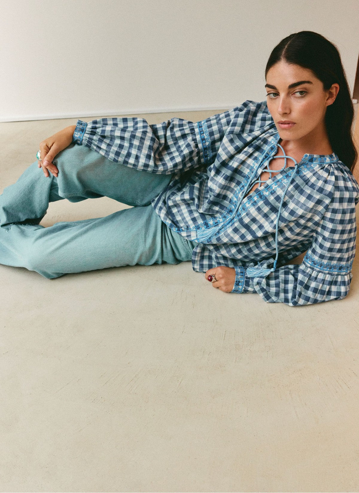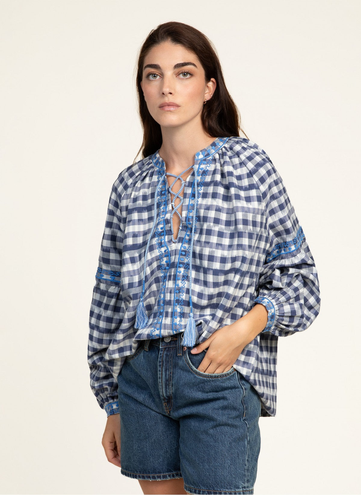 Full of charm and character, this top brings a playful edge to any summer outfit. Made from beautifully soft cotton, this lightweight blouse can be easily worn with shorts, linen trousers, or jeans when the weather starts to change.