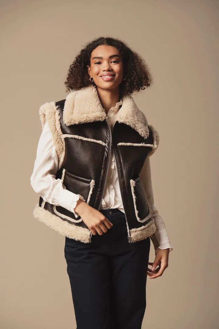 This waistcoat is perfect for adding some biker chic style to your look. In a zip up style, with fold over collar and patch pockets, this statement jacket will add just as much warmth as style to your look.
