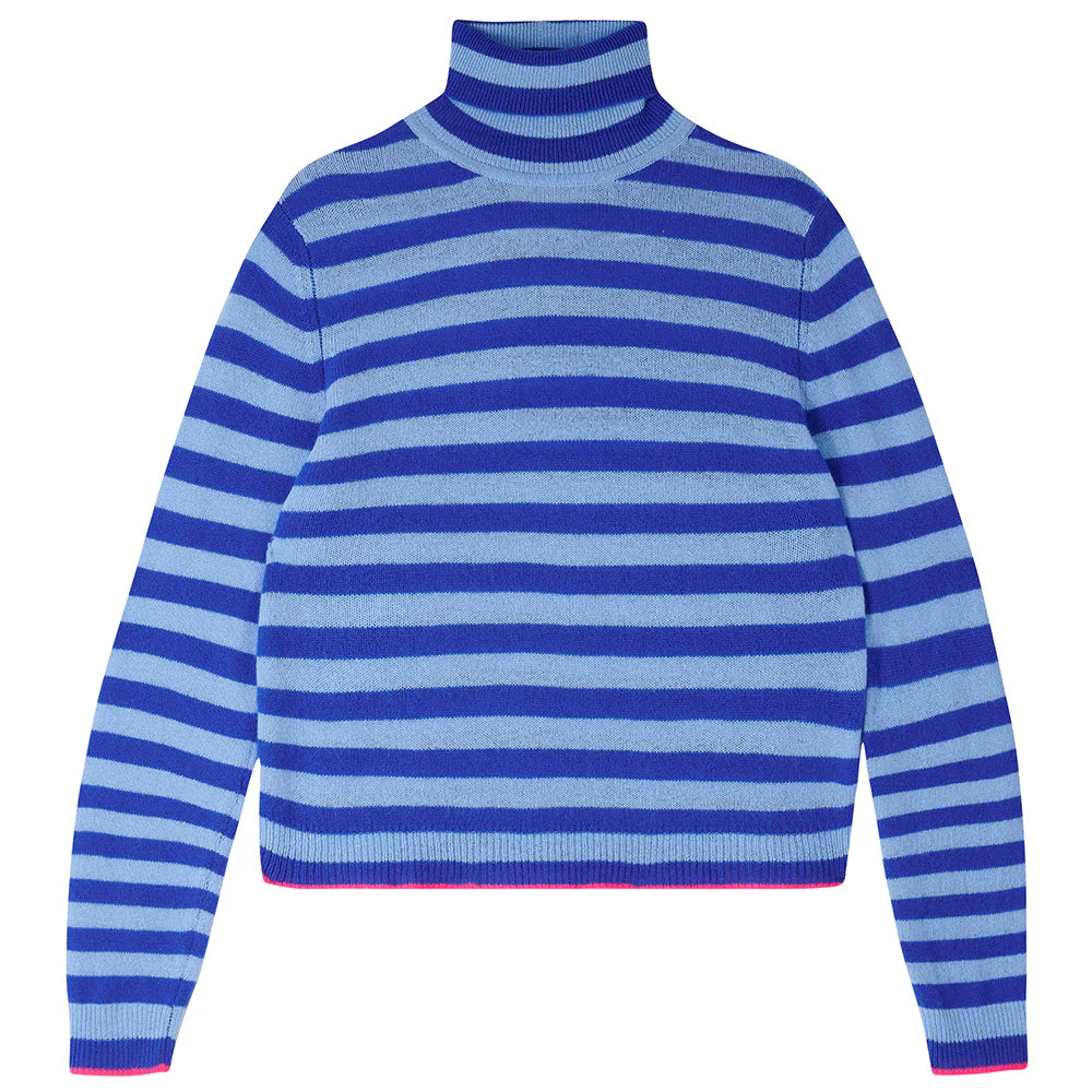Bring a bright splash of colour to your winter wardrobe with this luxury striped jumper. With long sleeves and a roll collar, this jumper will keep you cosy throughout the chilly weather without losing out on style. The flash of pink on the wrists and hem gives this bold jumper an extra touch of fun.