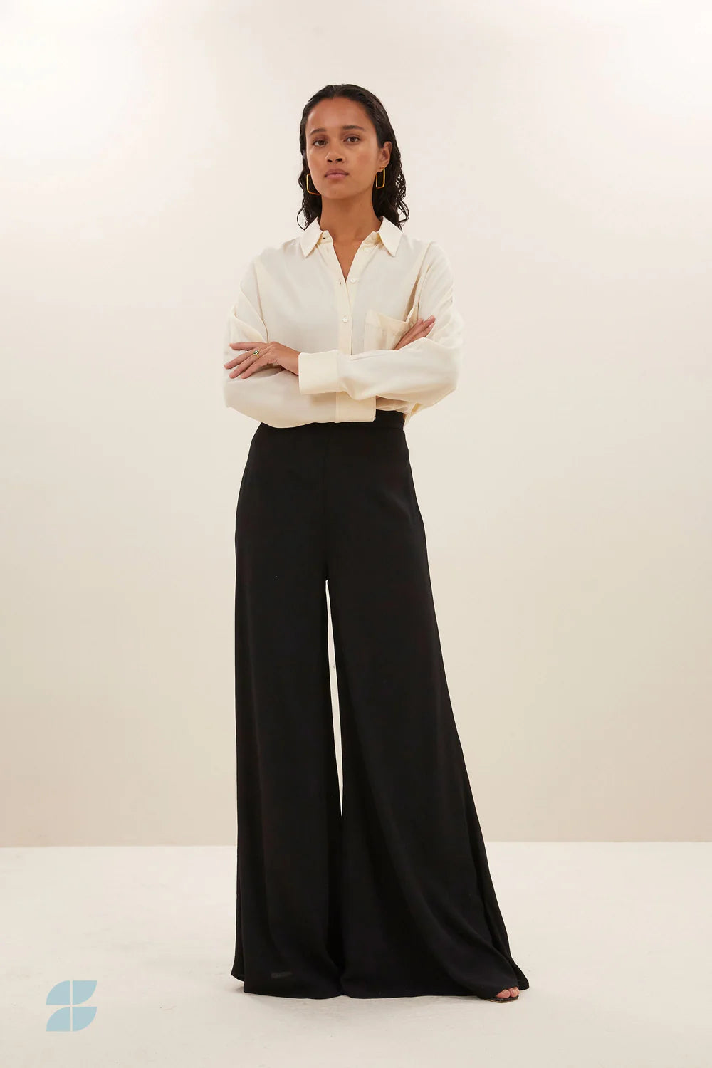 These pants feature a super wide leg for a bold and stylish look. Whether dressed up or down, you'll make a fashion statement with its simple yet fashionable design. Pair with an evening blouse or chunky jumper.