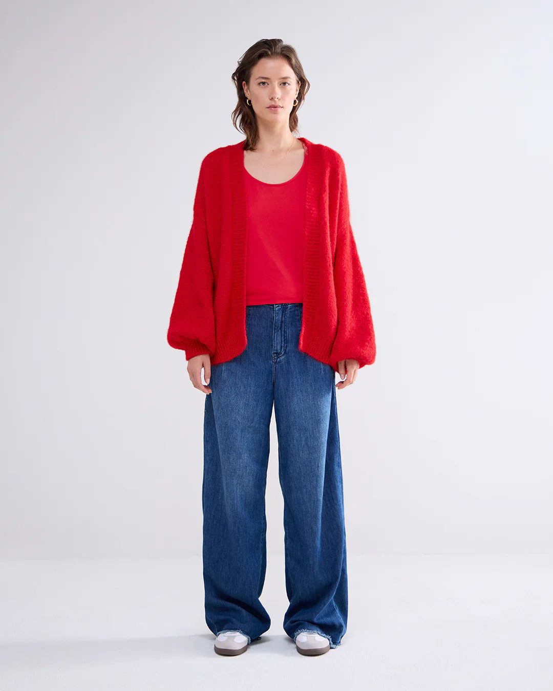 Puff Sleeve Cardigan - True Red