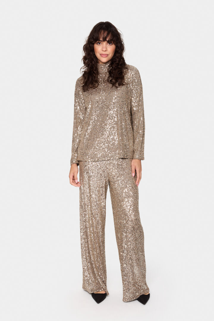 Get ready to sparkle and shine in the fashionable Reyana Pants - Asti! These wide leg pants feature an elasticated waistband for the perfect fit and are covered in stunning sequins for an all-over sparkly effect.