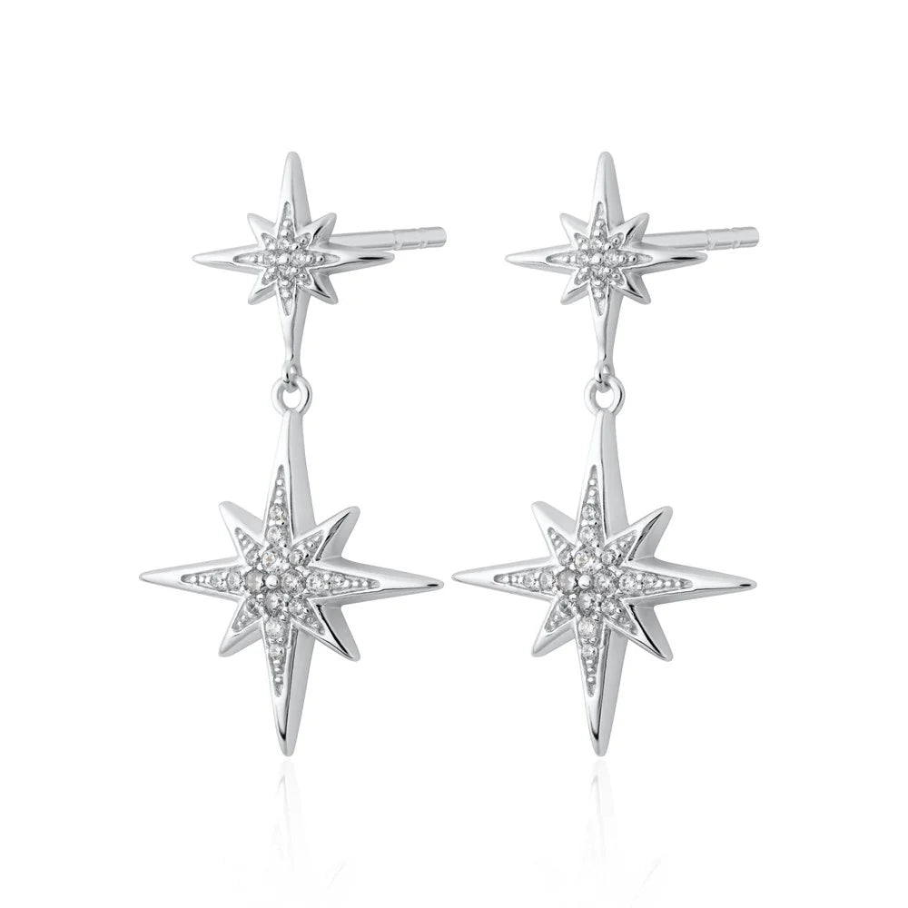 These earrings will certainly make you the brightest star! These earrings feature two stars, one with a post and butterfly clasp for easy wear, and the other hanging underneath. Both stars feature clear set stones for extra sparkle!