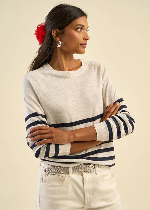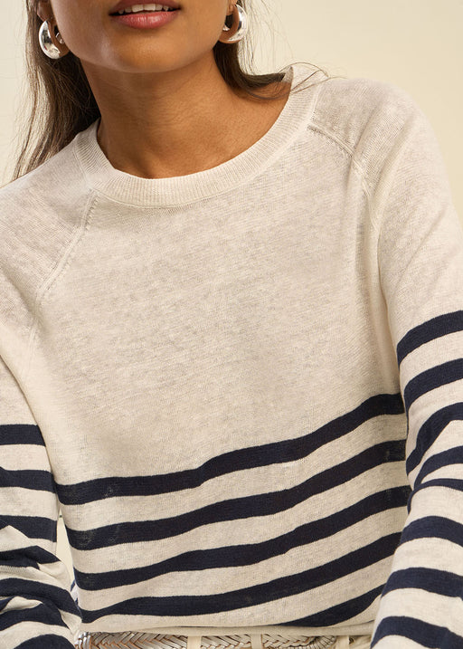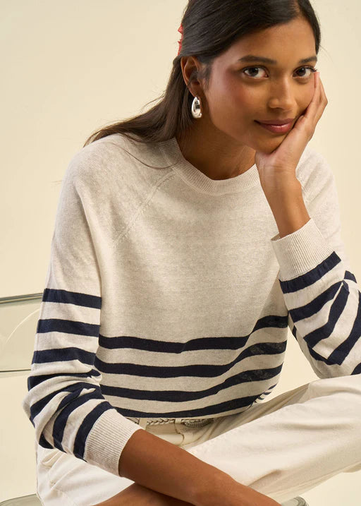 Nothing says summer like nautical stripes and this sweater is a refined take on your usual striped knit. With a round neck and long sleeves this lightweight sweat is perfect for when the sun sets and it gets a little chilly.