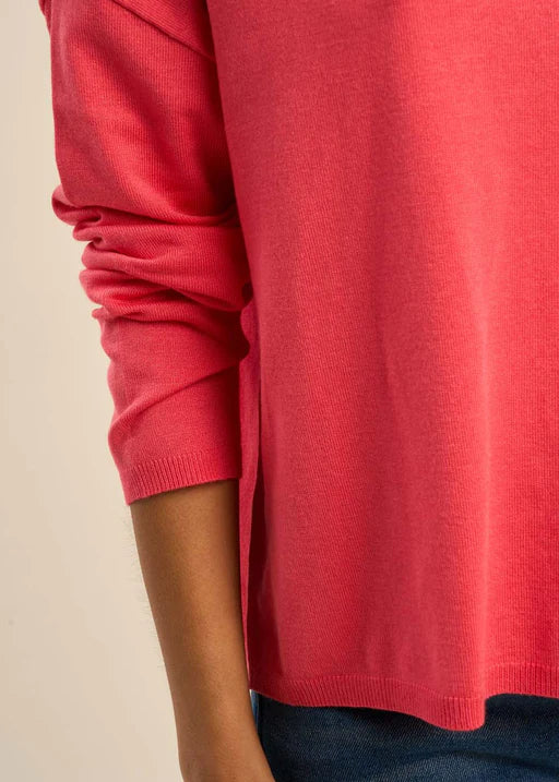 This sweater is a timeless knit for all year wear. In a loose fit with dropped shoulders, this knit is relaxed and cosy, easy to layer up in the winter or wear on summer evenings. In a bright pink colour, nothing says spring is here more than this classic knit.