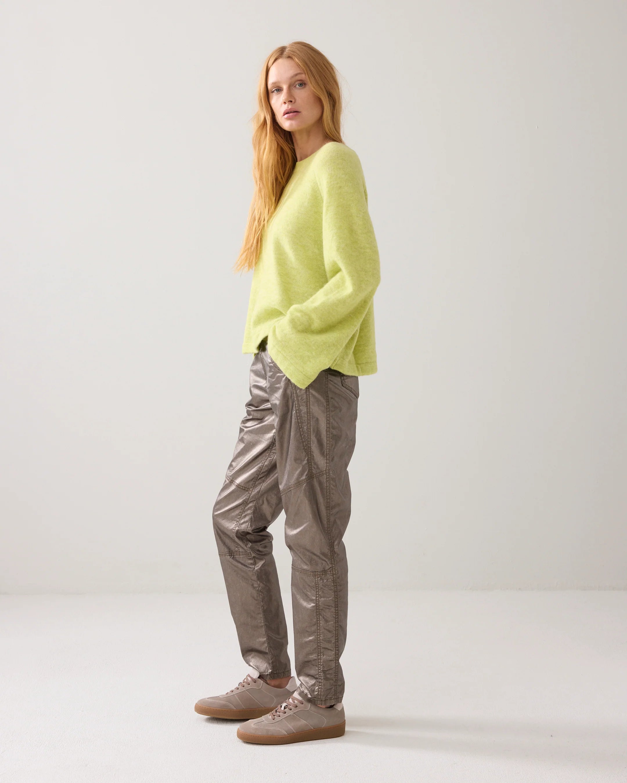 Everyday trousers with a touch of shine. Designed with a mid-rise waist and tapered leg, they’re cut from soft cotton with a subtle foil print that brings just the right amount of shimmer. Side seam detailing adds a polished finish, while the flattering back patch pockets are a quiet little confidence boost.