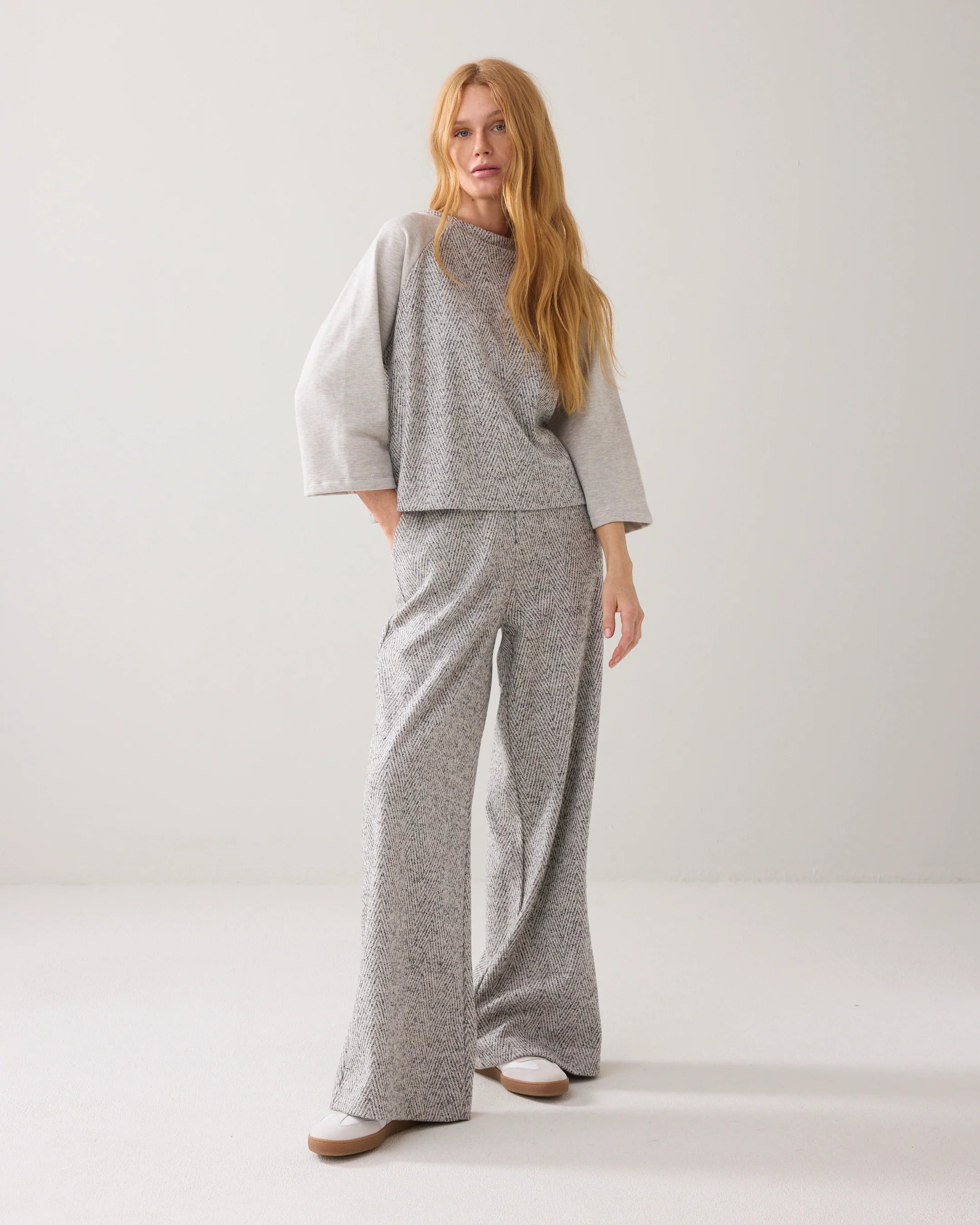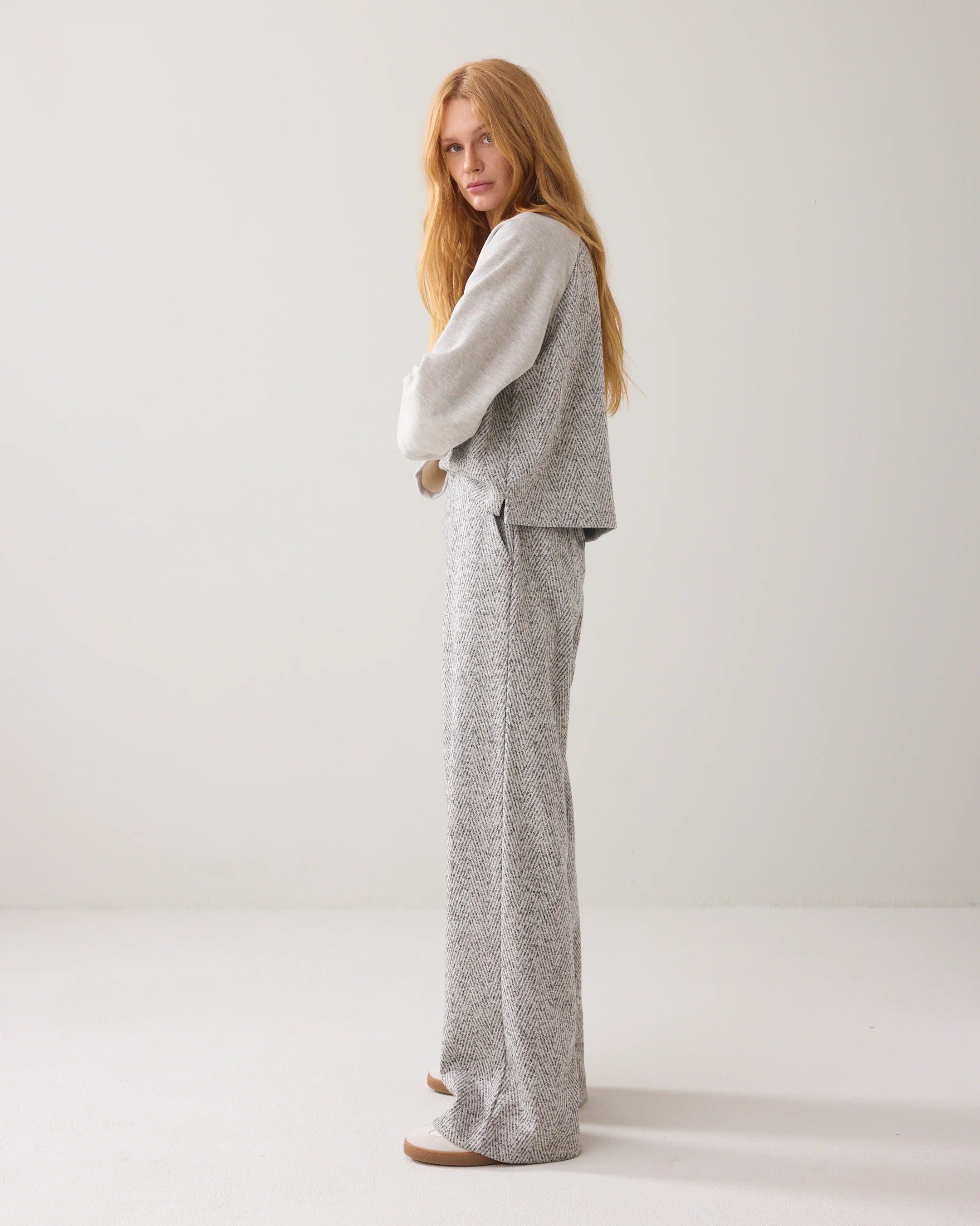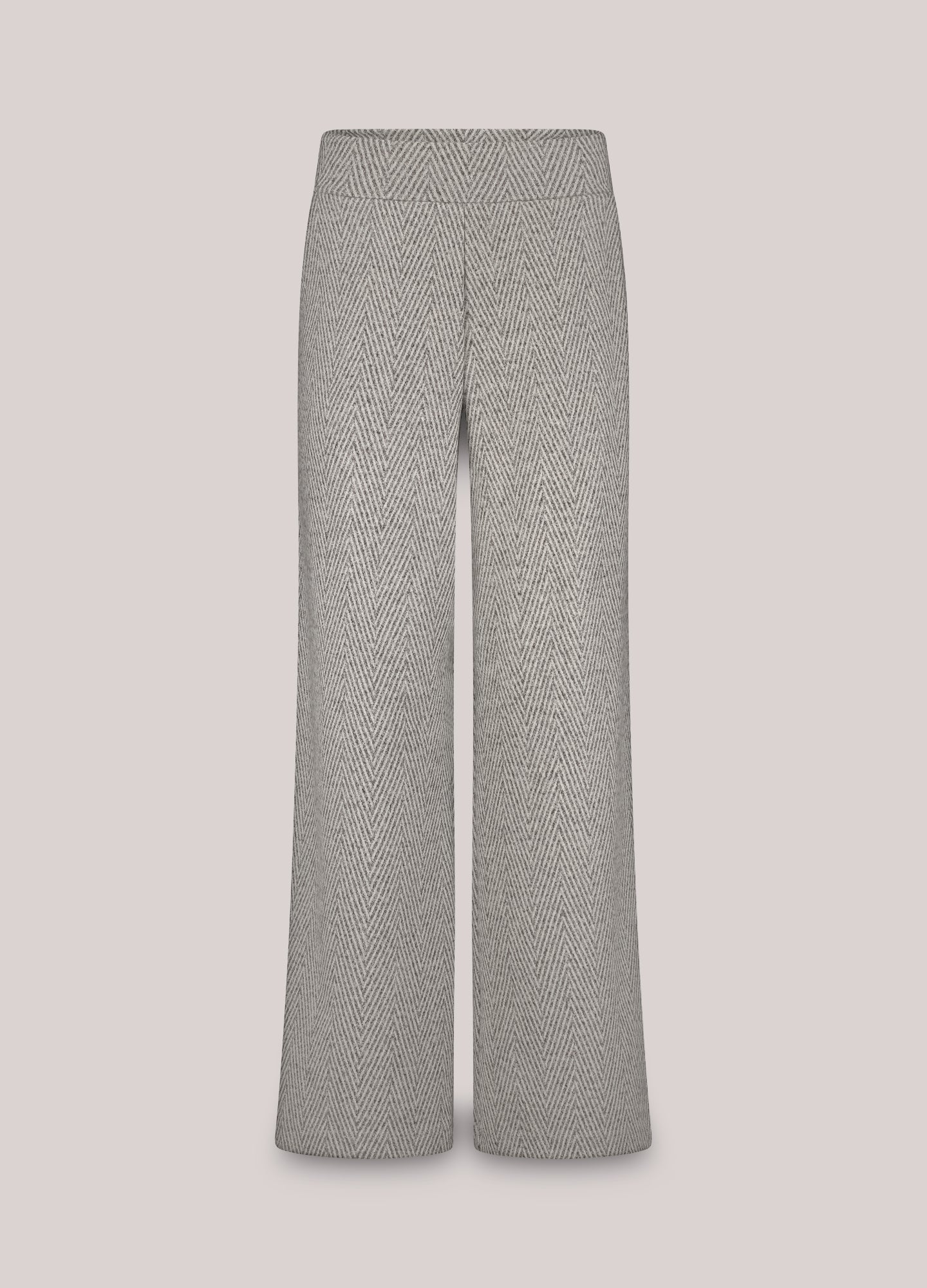 When drama meets comfort, you get these trousers. Cut in a feminine fit from luxuriously soft herringbone jacquard, they feature an ultra-flattering high elasticated waistband and front slit pockets for that easy, hands-in-your-pockets confidence. The extremely wide leg flows with every step, giving them serious movement and presence.