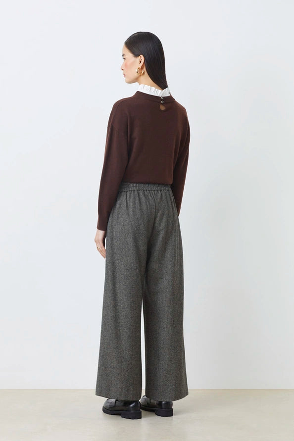 These wide leg pants are a perfect combination of tailored and casual. With their structured, cropped leg featuring a pressed crease and button fastening, these elements give these pants a sophisticated finish, great for wear with blouses for work. But, these pants can be kept casual with a simple tee, and their elastic waistband keeps these comfortable no matter the occasion.