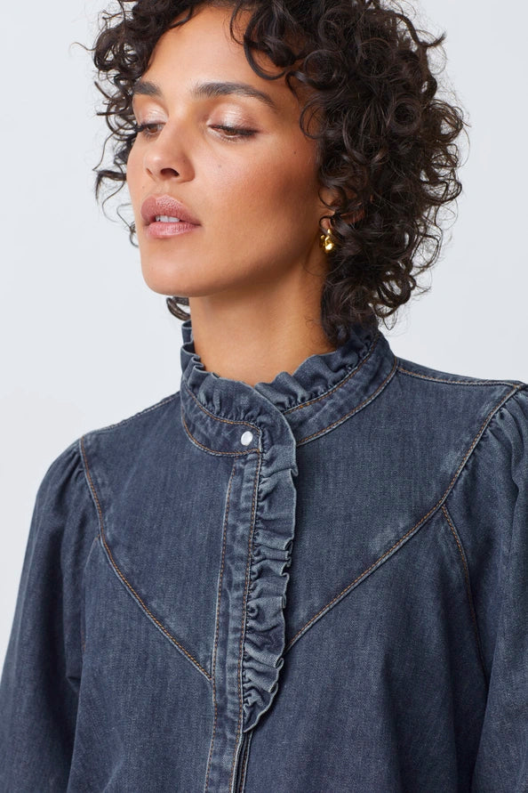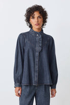 In the happy blend of feminine and casual, this piece takes a western twist on your usual blouse. Made from a soft cotton and decorated with subtle details like a ruffled collar and defined yoke, this beautiful blouse is ideal for occasions that you want to be a little more dressed up than usual but without the effort. We think this blouse looks particularly striking when paired with a bright vibrant colour, think blanket scarfs or corduroy trousers.