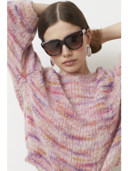 Casual but full of personality, this striped multi-coloured jumper is an easy piece to have in your wardrobe this autumn. Throw on with your jeans or layer over a crisp button up shirt for a smarter look. The boat neckline on this knit is beautifully elegant, giving this relaxed knit a feminine finish.