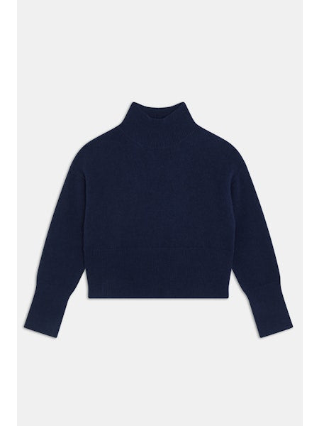A simple thrown on and go knit like this is an easy piece to have in your wardrobe this winter. The navy blue colouring keeps this classy and sophisticated, giving it the potential to be dressed up if need be. But the long sleeves and mock neck will be sure to keep you super snuggly on the coldest winter days.