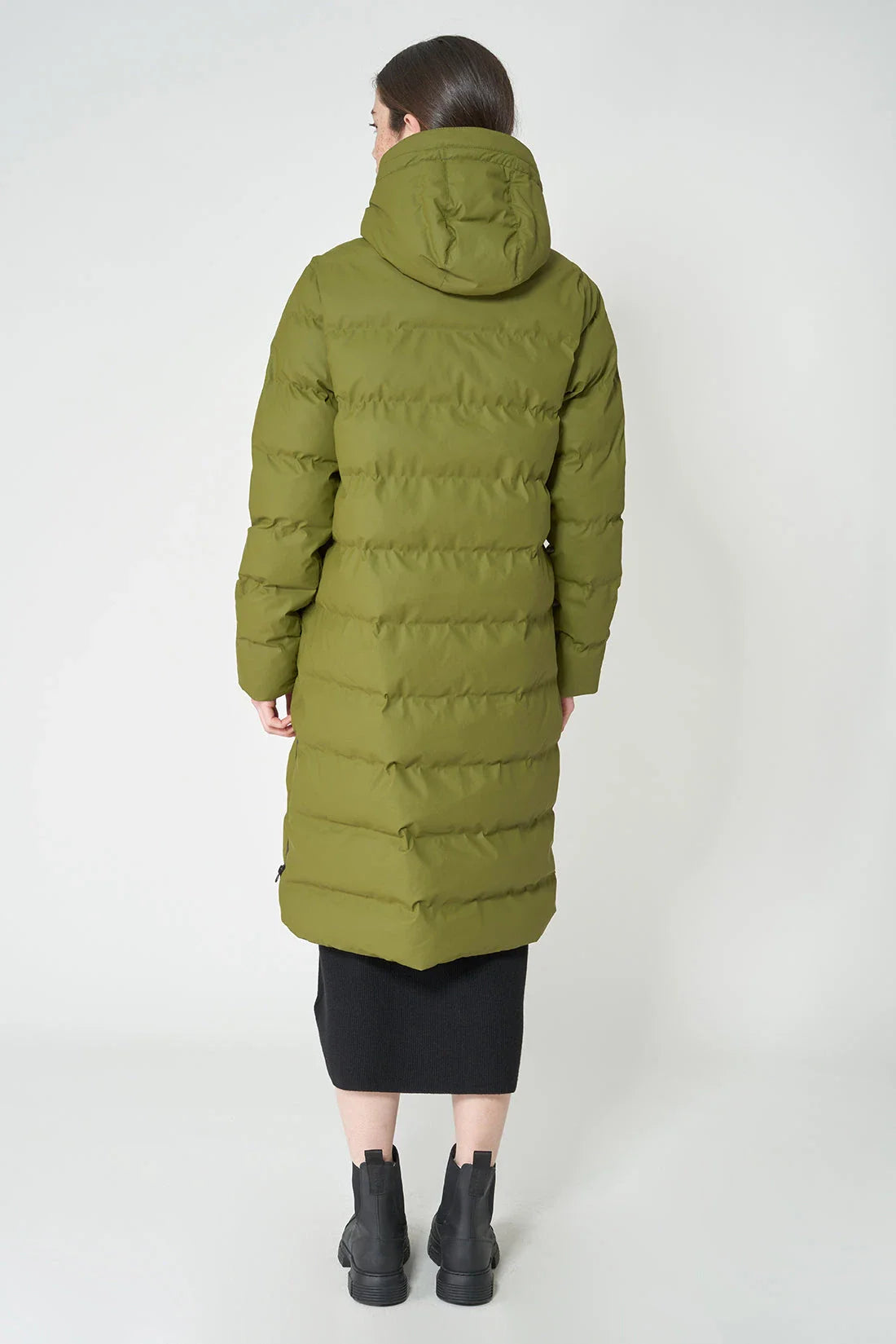 With all seams taped and a straight fit, the Puddle puffer protects you from the elements in style. Crafted from Tanta's iconic waterproof fabric, this longline puffer coat is padded with a featherless insulation layer and designed with seamless chambers.