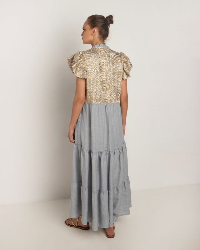 New Triangle Long Dress - Light Grey/Gold