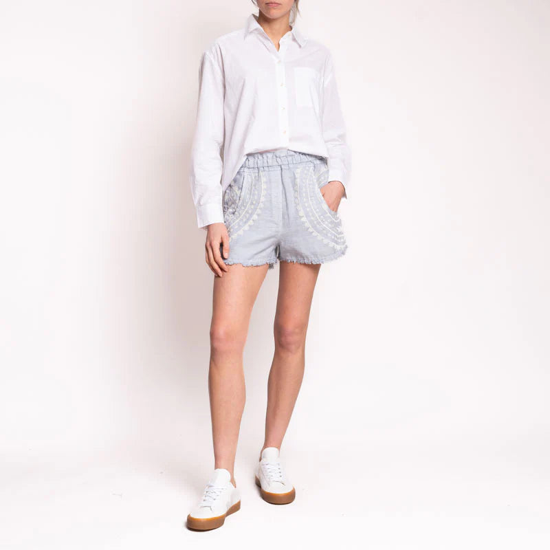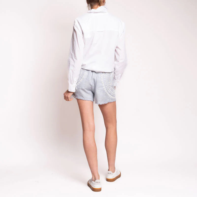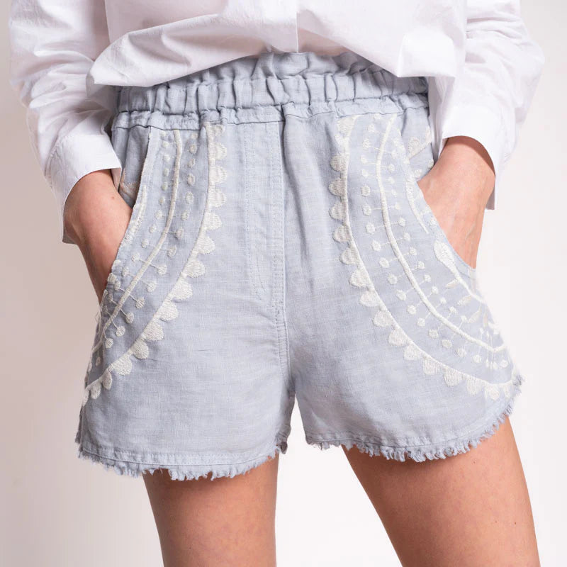 These casual shorts are a simple way to add some Grecian influence to your summer. With an elasticated waistband and lightweight linen feel, these shorts are comfortable, breathable and perfect for the heat. The cream embroidery details add some extra fun to these classic shorts. Tuck in a blouse or t-shirt for a simple stylish look.