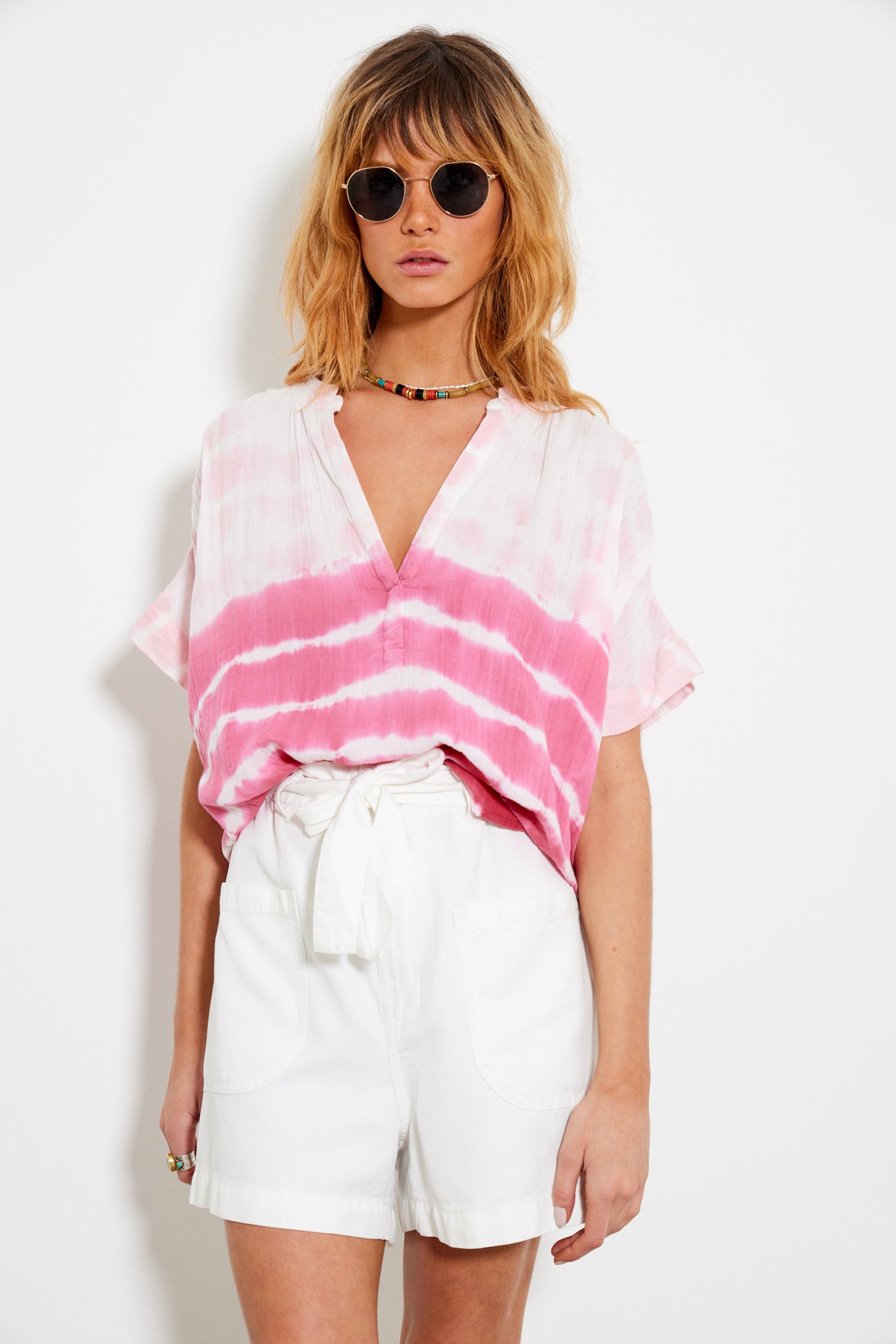 With a paper bag style waist and a detachable belt, the steevy shorts are a unique twist on your casual summer wear. With patch pockets for an extra flattering touch and a white denim , these shorts can be thrown on with any top for days on the go. Or, dress up with a blouse and sandals for evenings in the sunshine.