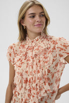 Embrace effortless elegance with the Lilja Crinkle SS Shirt in Seedpearl Valiant Daisy. This delicate short-sleeve piece features charming frills and a crinkled fabric texture that adds subtle movement and dimension. The soft, feminine silhouette and daisy print create a pretty, romantic aesthetic perfect for layering or wearing solo. Crafted for comfort and style, it's an ideal addition to any wardrobe seeking understated sophistication with a touch of whimsy.