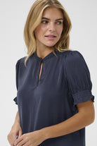 The Nunni Shirt in Eclipse is your go-to piece for effortless versatility. Designed with a sophisticated silhouette that flatters the figure, this chic shirt transitions seamlessly from day to night. Layer it over a slip dress for evening elegance, wear it solo with tailored trousers for the office, or style it casually with denim for weekend ease. The refined cut and timeless Eclipse tone make it a wardrobe essential that works harder than it looks.