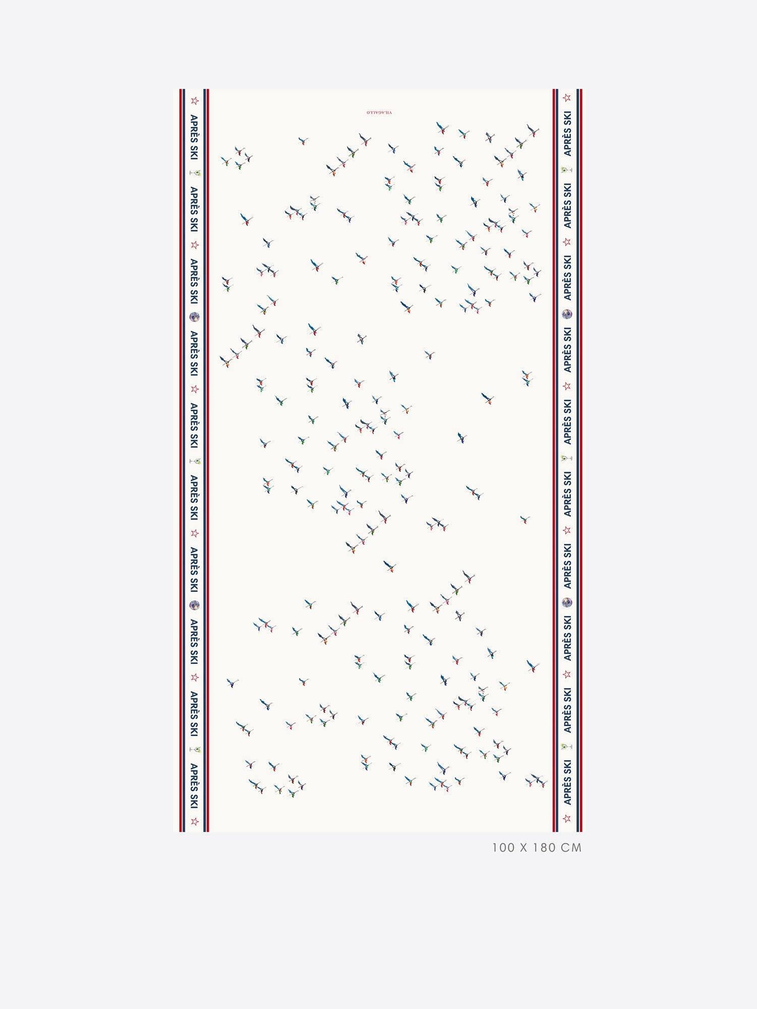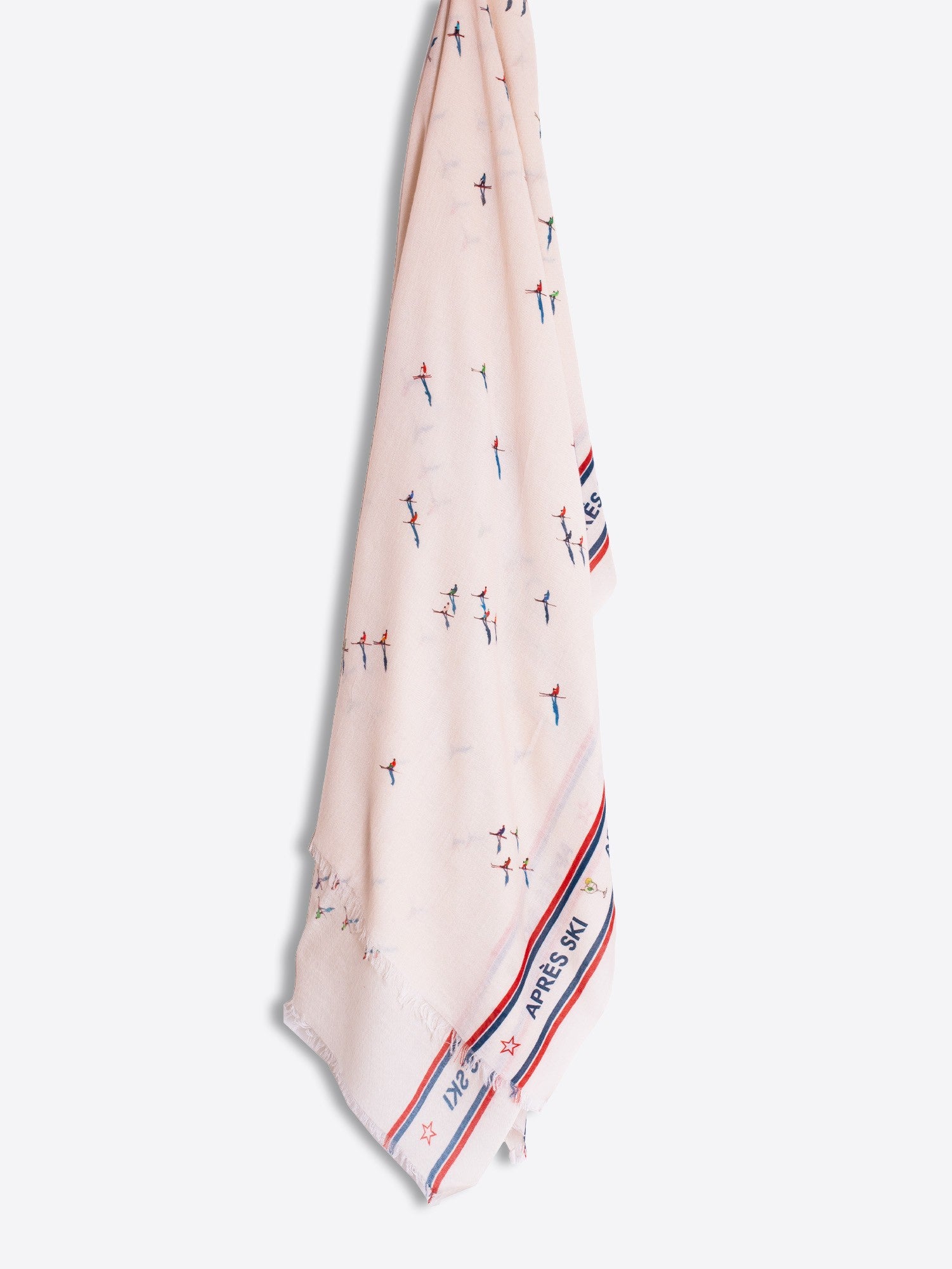 Fit for the festive season, this winter scarf features mini skier motifs and an 'apres ski' inspired design. Beautifully soft and lightweight, this scarf brings an extra layer of warmth and style to any look this winter.
