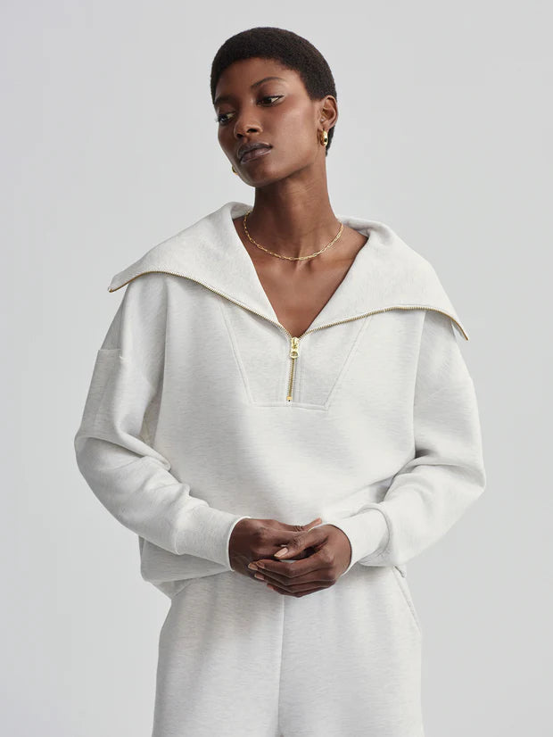 The Catherine is a relaxed sweat, perfect for throwing on over leggings and a tee for days on the go. With dropped shoulders for an easy look, this sweatshirt has a half zip round the neck, for a luxury loungewear look.