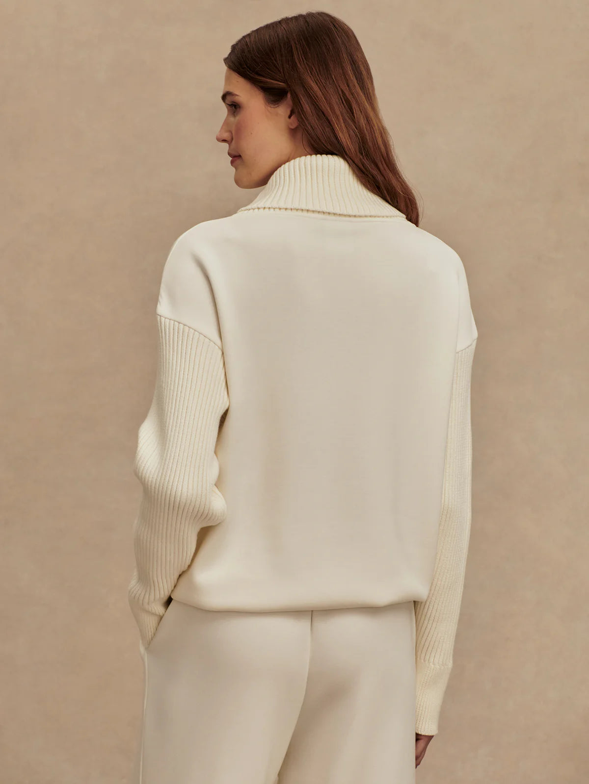Meet your new cosy obsession. Made from Varley’s signature DoubleSoft fabric, this knitted top wraps you in warmth and texture. The cowl neck and long knitted sleeves add instant comfort, while dropped shoulders and an oversized, relaxed fit make it effortlessly stylish. A drawcord at the hemline lets you adjust the shape to suit your mood.