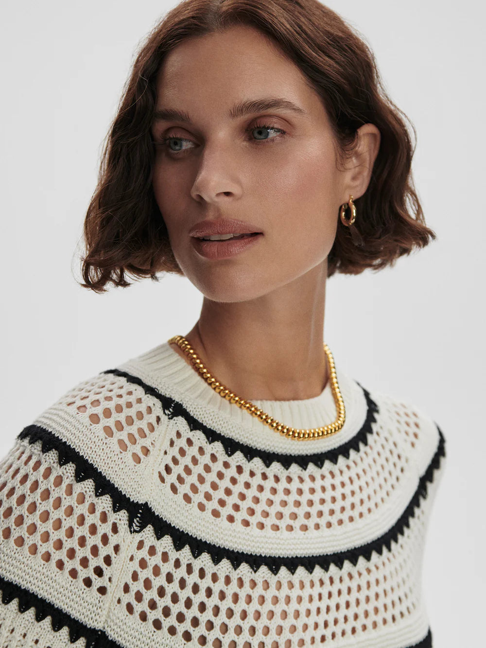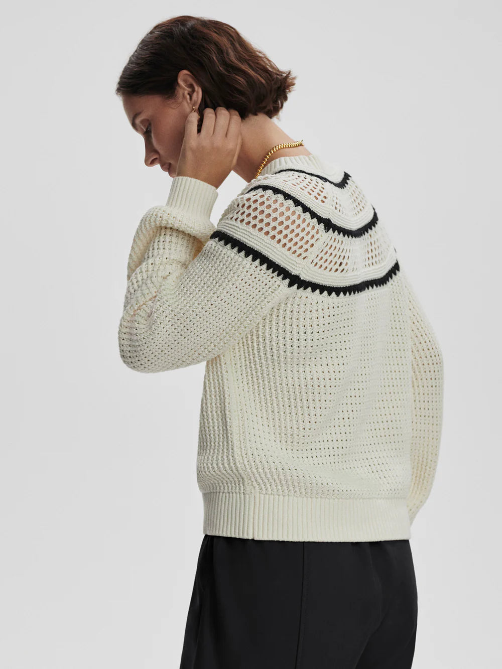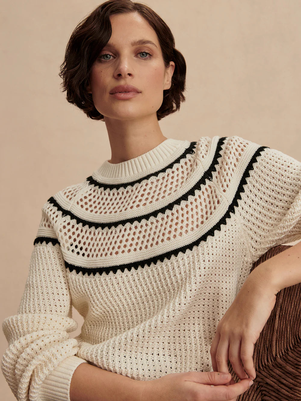 This sweater is an effortless blend of athleisure and casual style, fit for throwing on over your yoga wear or pairing with your jeans. With a pointelle knit for extra detail, this sweater is unique but timeless, so you can wear it throughout the year.