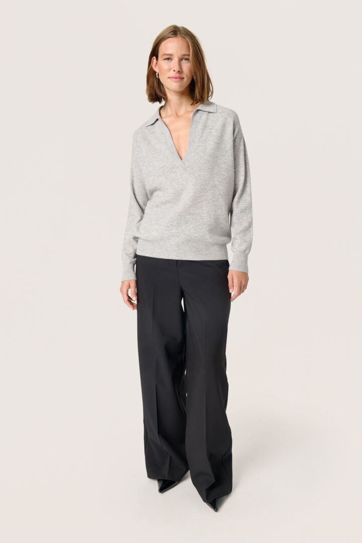 Lilu Corinne Wide Long Pants - Grey Melange Suiting