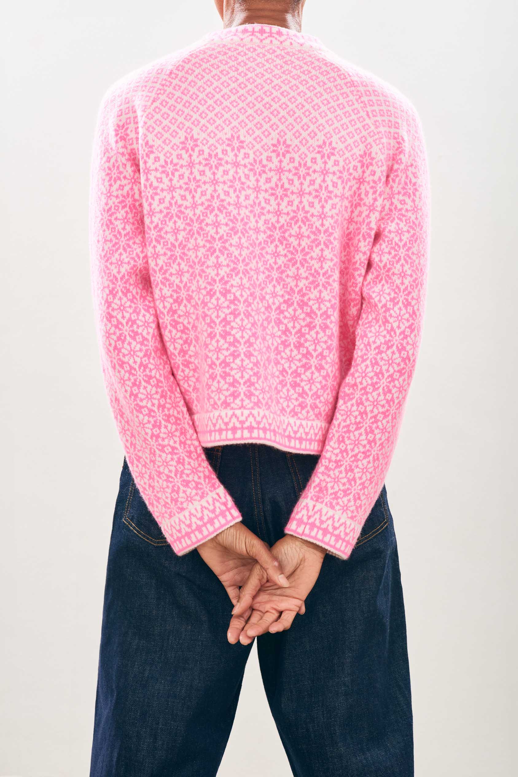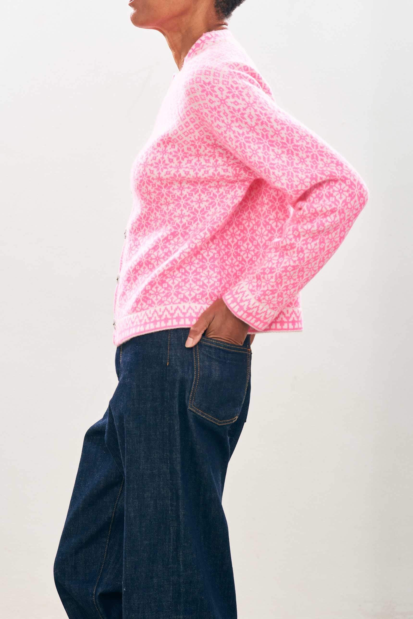 Norse Cardigan - White / Neon Pink